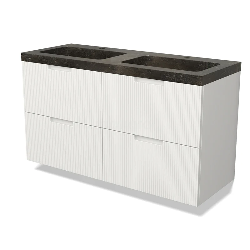Modulo Vanity units with basin | 120 cm Matte white Line front Natural stone 4 drawers