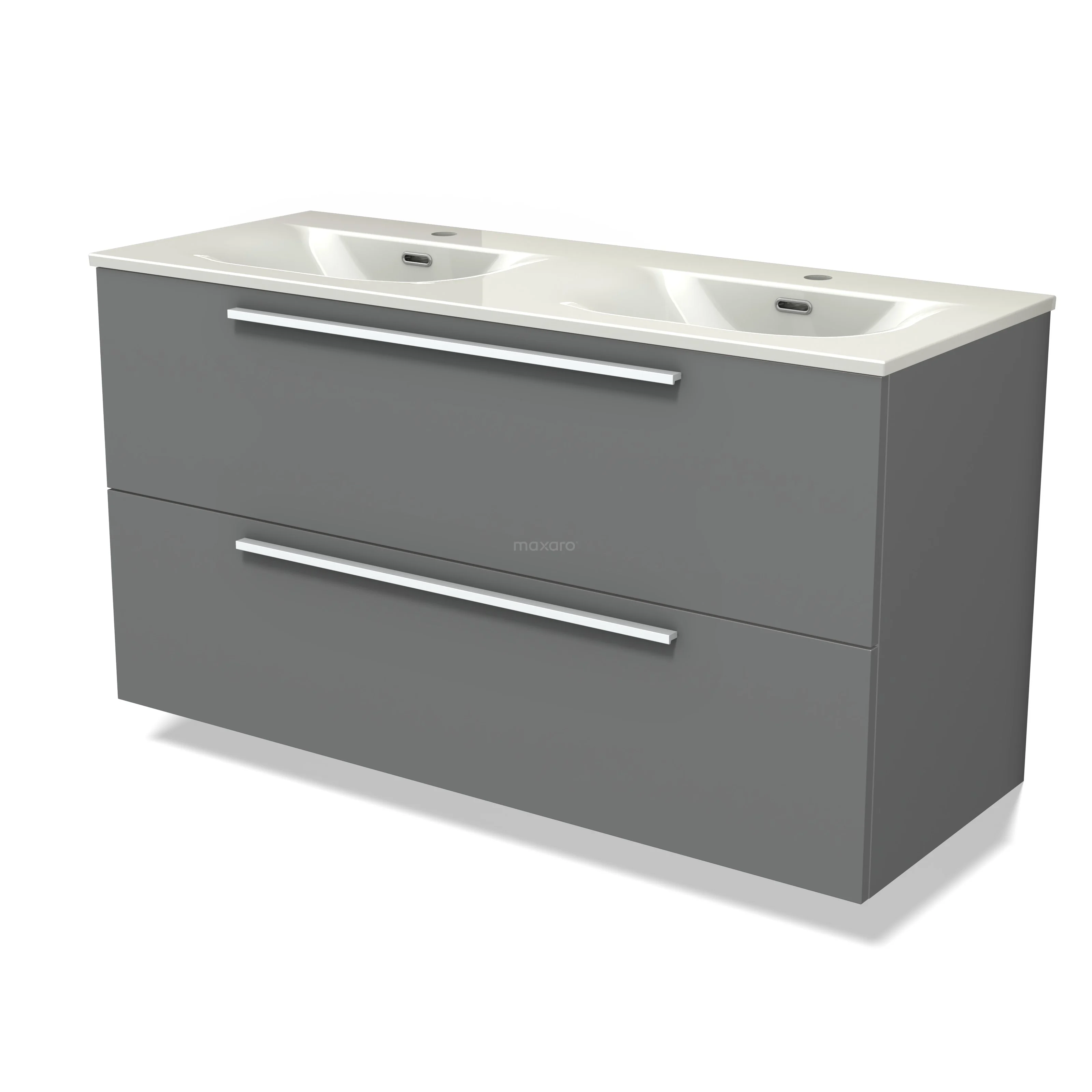 Modulo Vanity units with basin | 120 cm Mid grey Flat front Ceramic 2 Stacked drawers