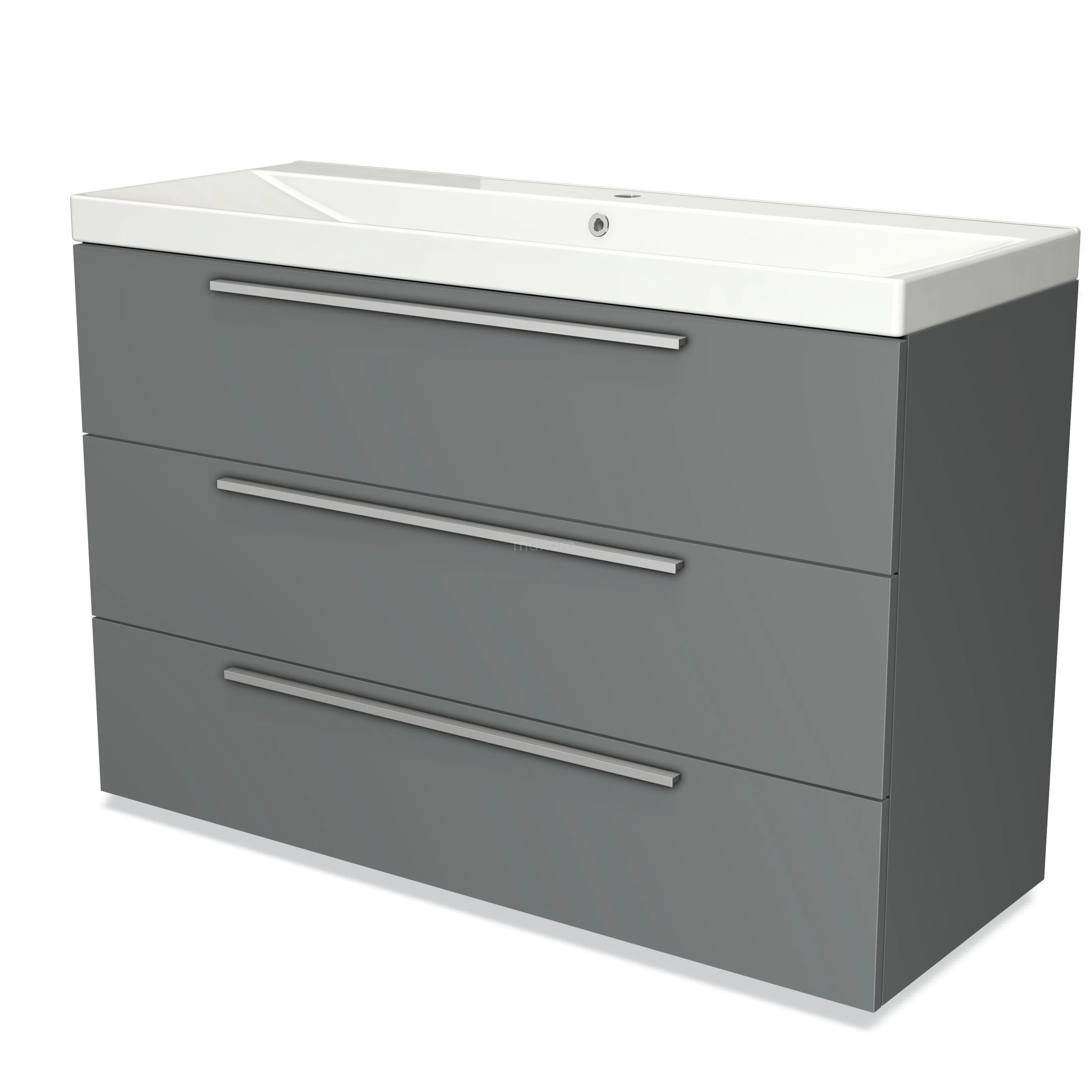 Modulo Vanity units with basin | 120 cm Mid grey Flat front Ceramic 3 drawers