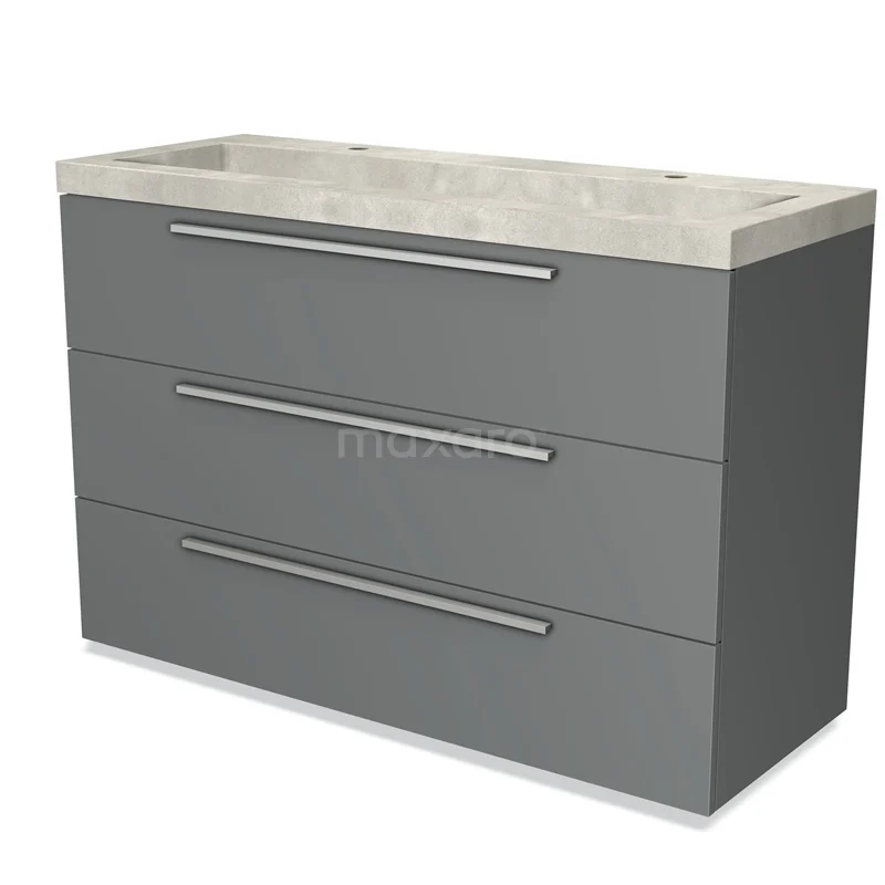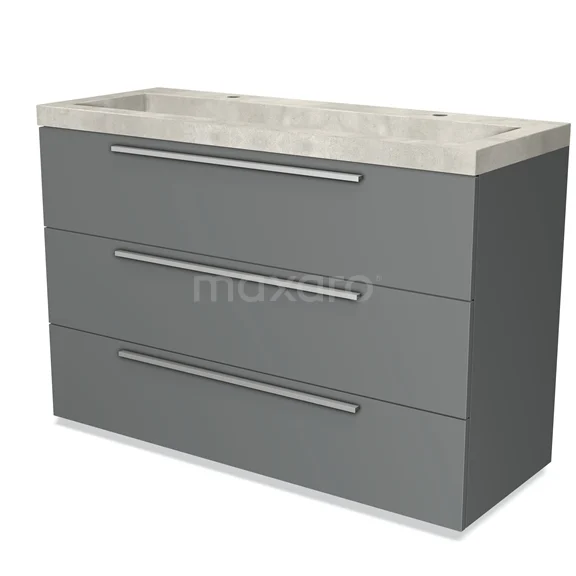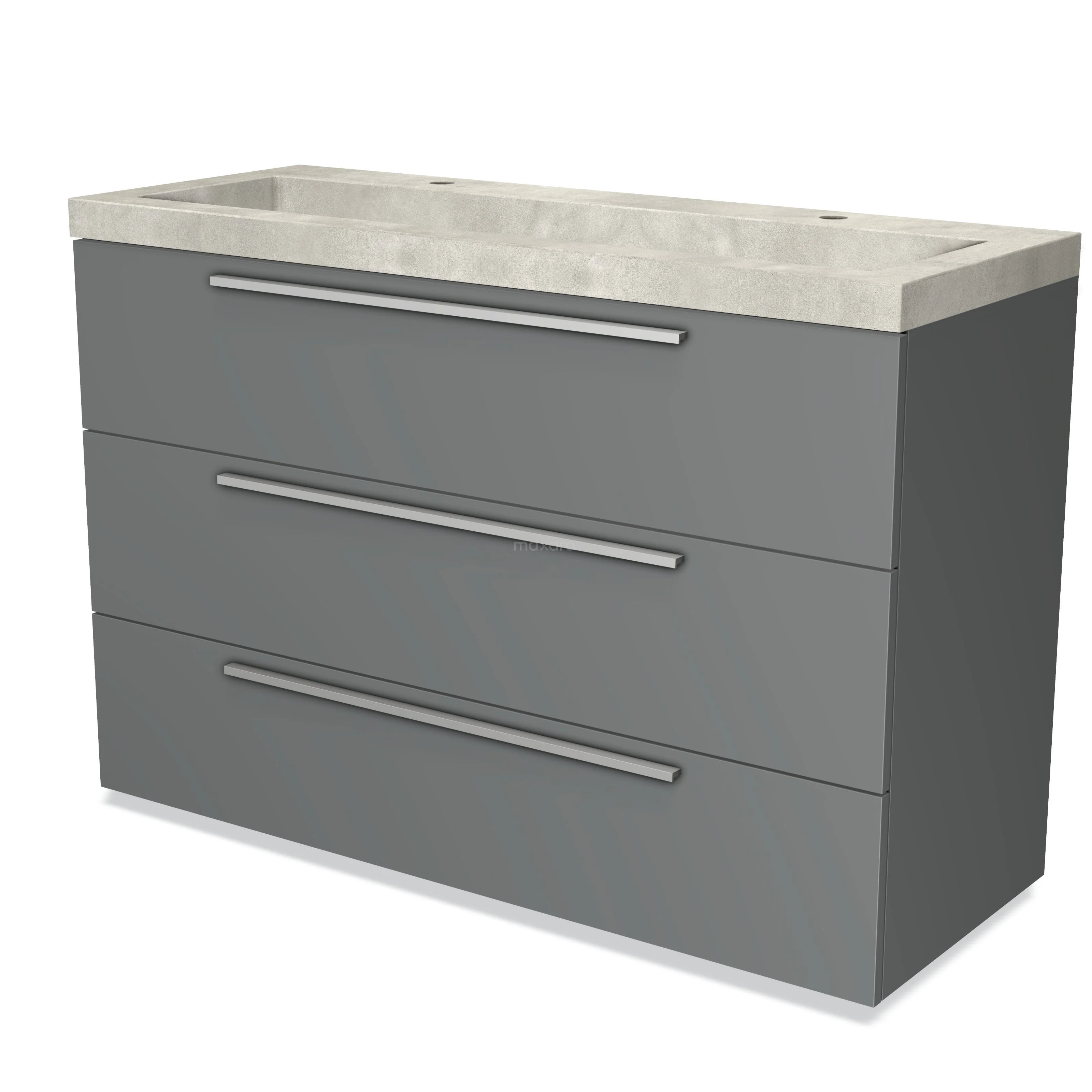 Modulo Vanity units with basin | 120 cm Mid grey Flat front Concrete 3 drawers