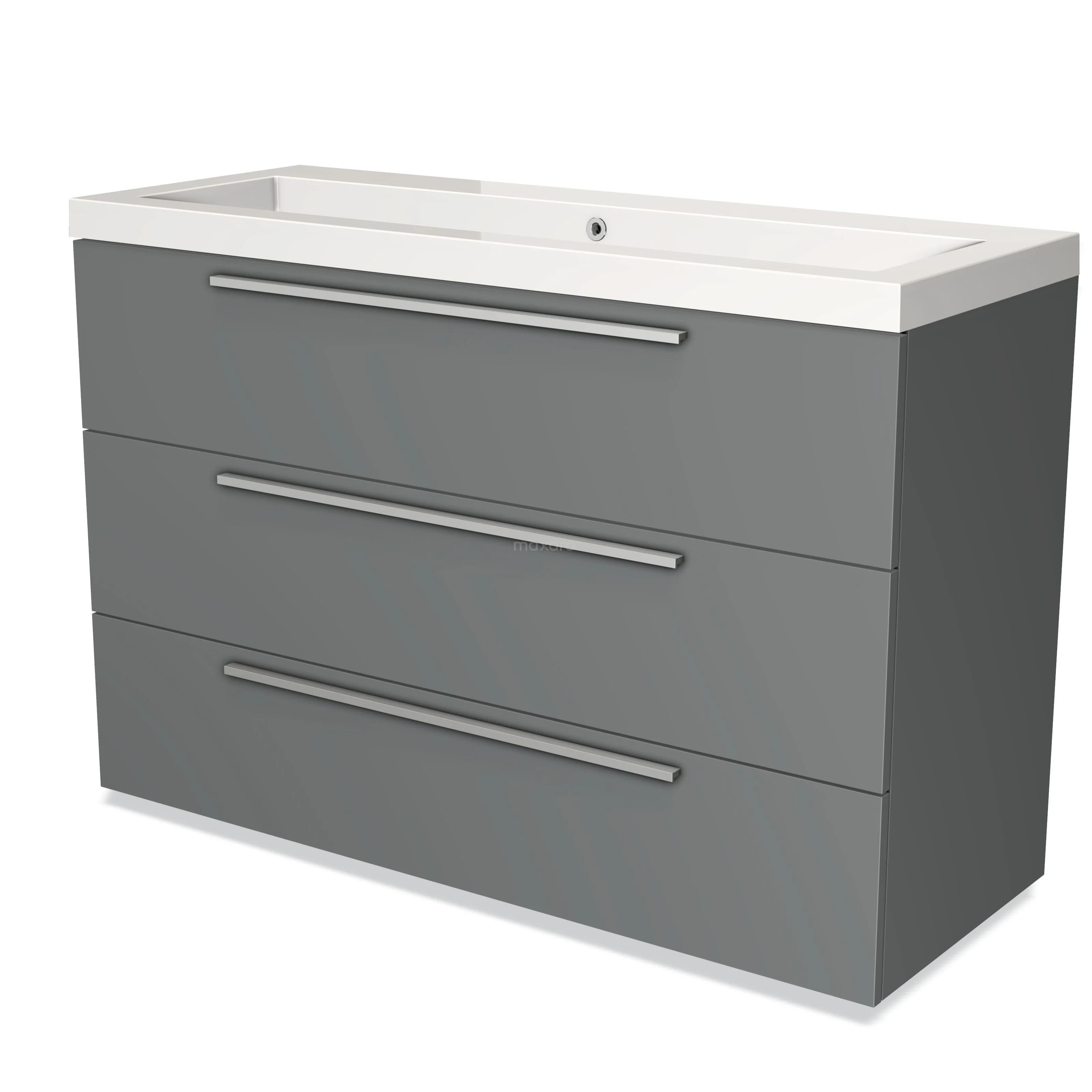 Modulo Vanity units with basin | 120 cm Mid grey Flat front Mineral marble 3 drawers