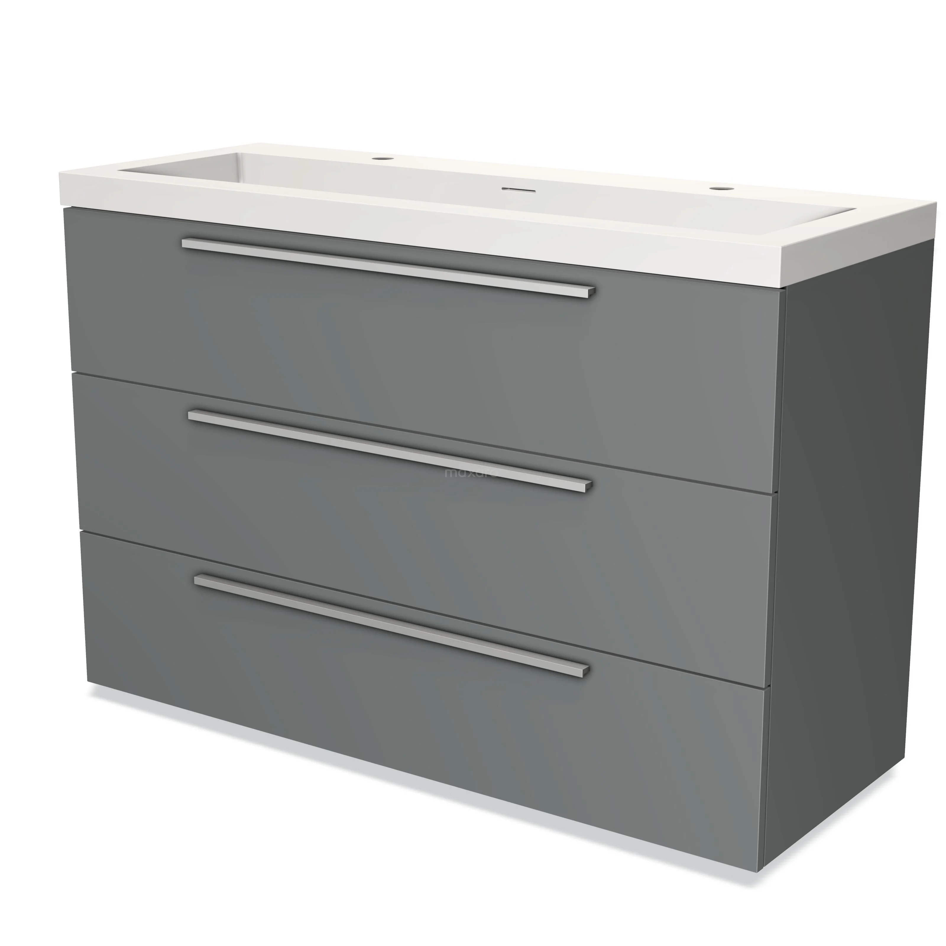 Modulo Vanity units with basin | 120 cm Mid grey Flat front Solid surface 3 drawers