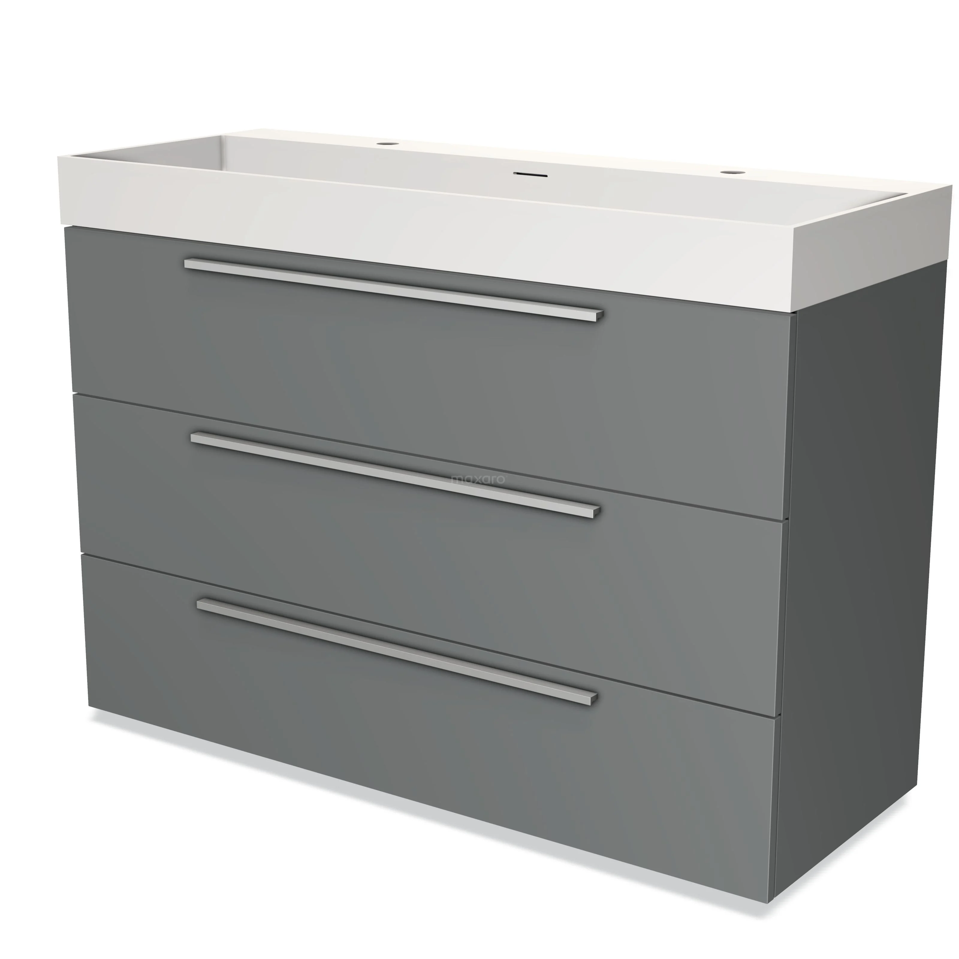 Modulo Vanity units with basin | 120 cm Mid grey Flat front Solid surface 3 drawers