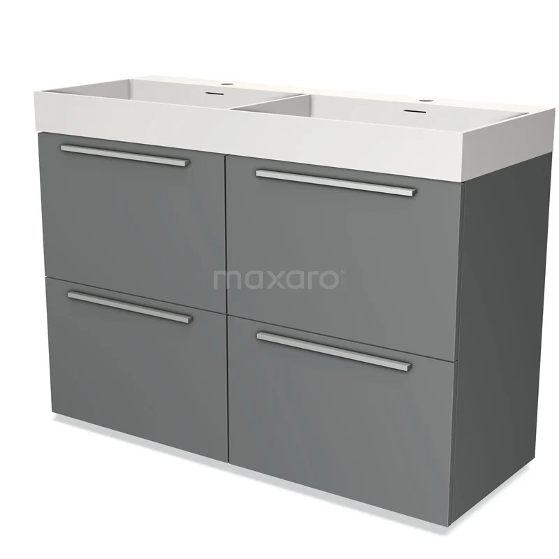 Modulo Vanity units with basin | 120 cm Mid grey Flat front Solid surface 4 high drawers