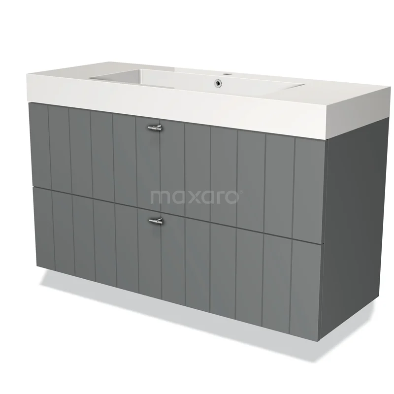 Modulo Vanity units with basin | 120 cm Mid grey Slat front Mineral marble 2 Stacked drawers