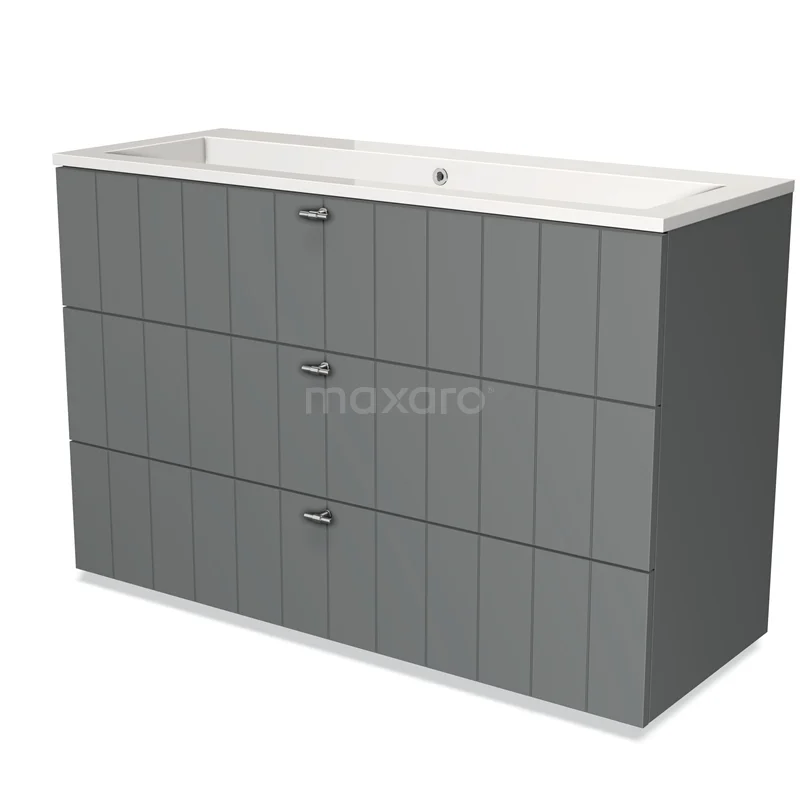 Modulo Vanity units with basin | 120 cm Mid grey Slat front Mineral marble 3 drawers