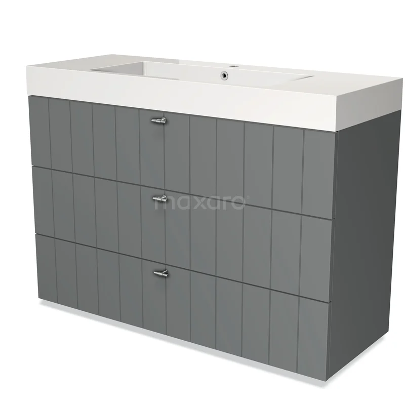 Modulo Vanity units with basin | 120 cm Mid grey Slat front Mineral marble 3 drawers
