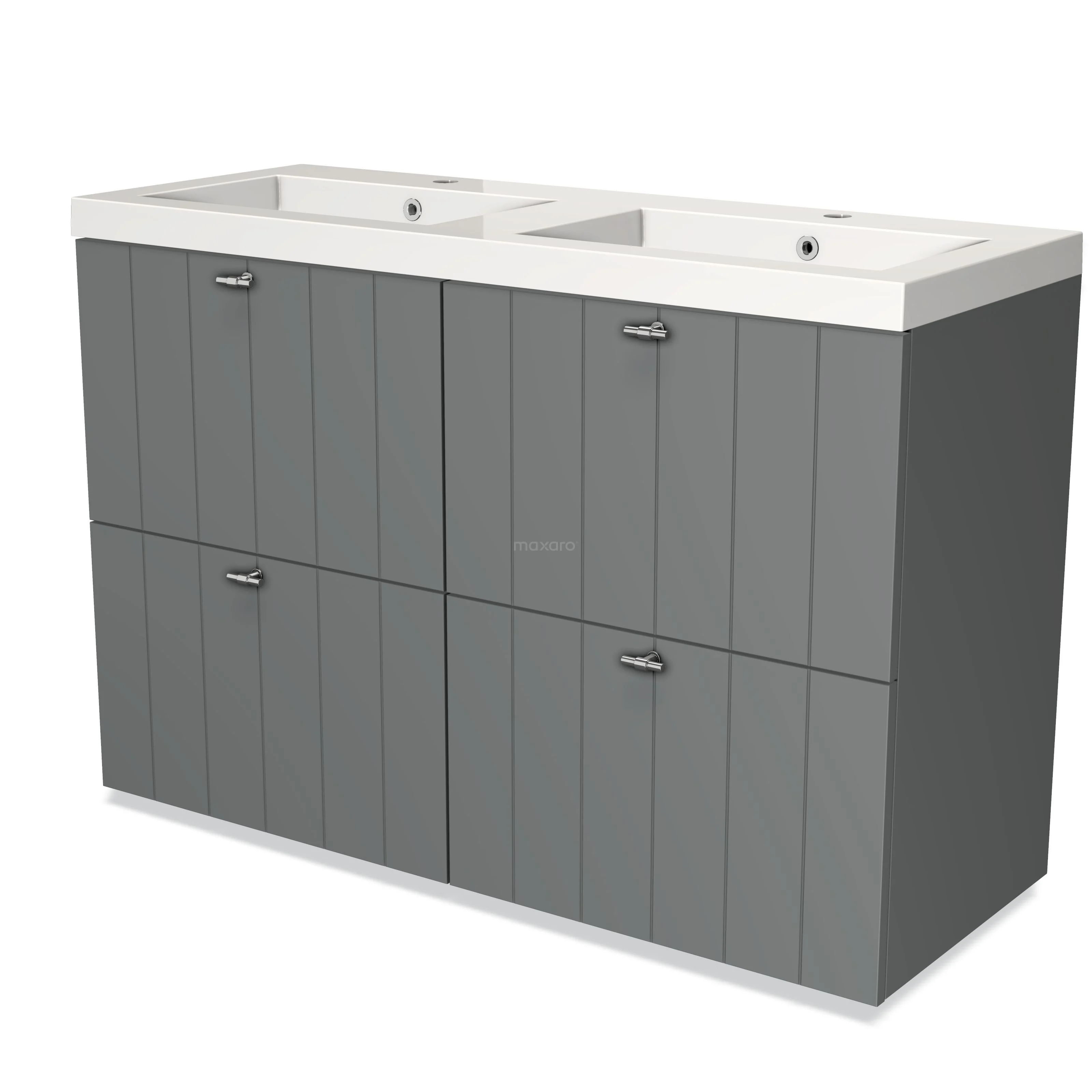 Modulo Vanity units with basin | 120 cm Mid grey Slat front Mineral marble 4 high drawers