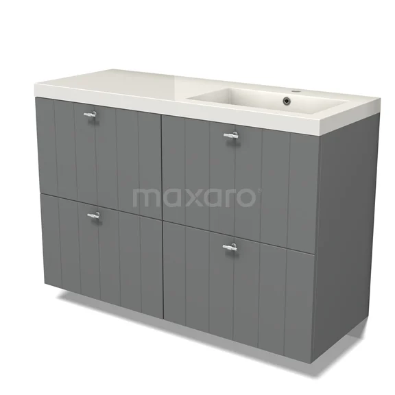 Modulo Vanity units with basin | 120 cm Mid grey Slat front Mineral marble 4 high drawers