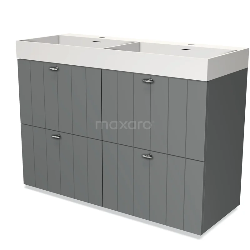 Modulo Vanity units with basin | 120 cm Mid grey Slat front Solid surface 4 high drawers
