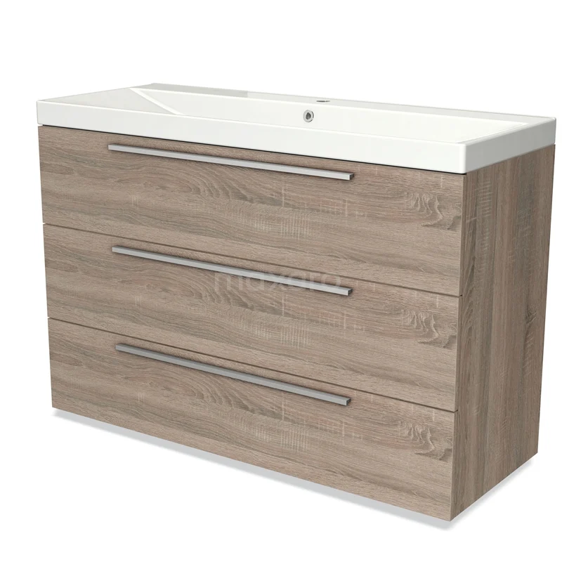Modulo Vanity units with basin | 120 cm Oak Flat front Ceramic 3 drawers