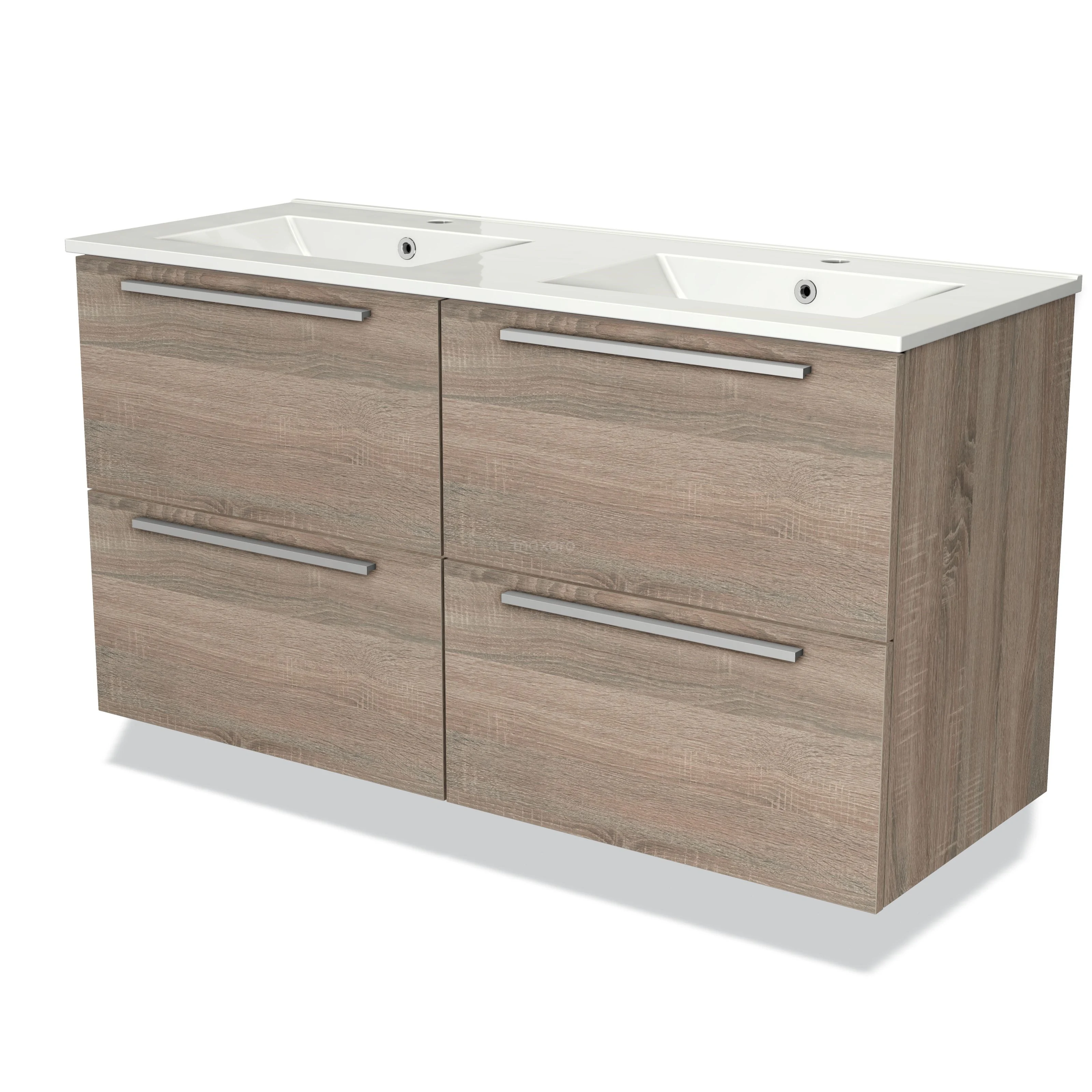 Modulo Vanity units with basin | 120 cm Oak Flat front Ceramic 4 drawers