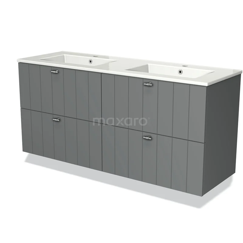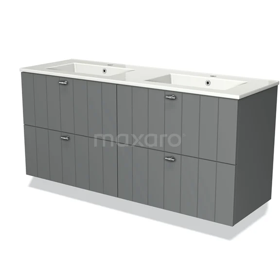 Modulo Vanity units with basin | 140 cm Mid grey Slat front Ceramic 4 drawers