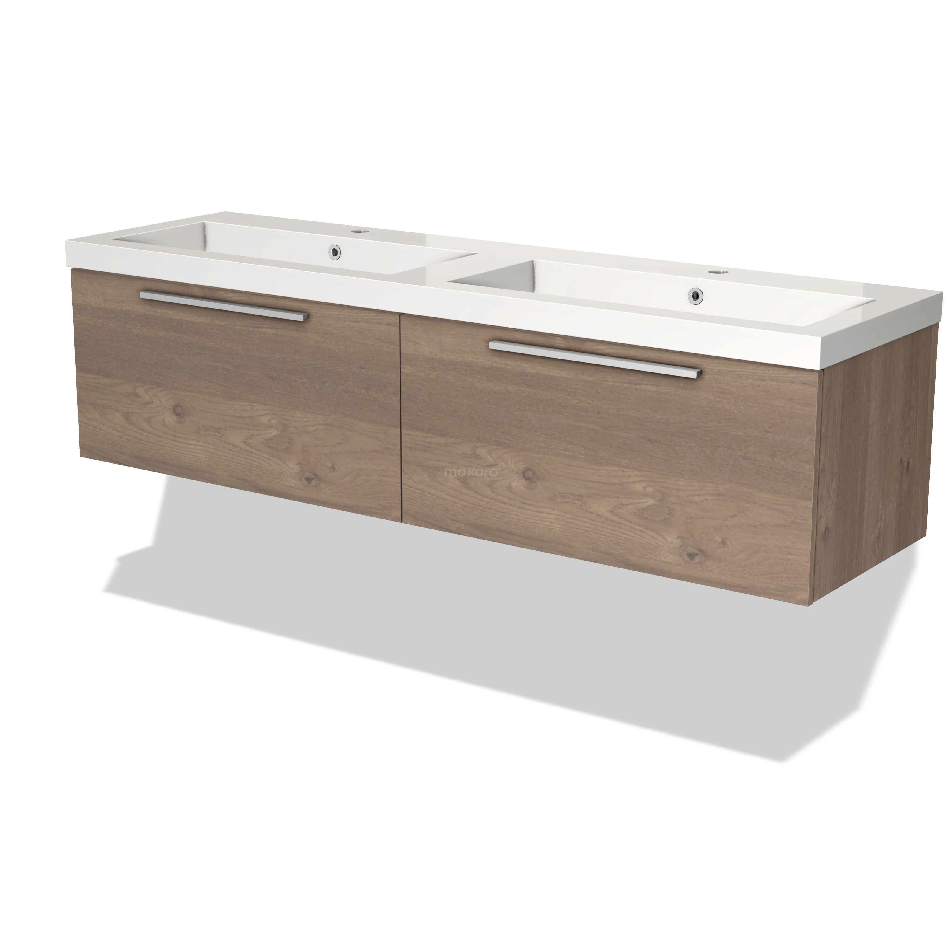 Modulo Vanity units with basin | 160 cm Mid brown oak Flat front Mineral marble 2 Side-by-side drawers