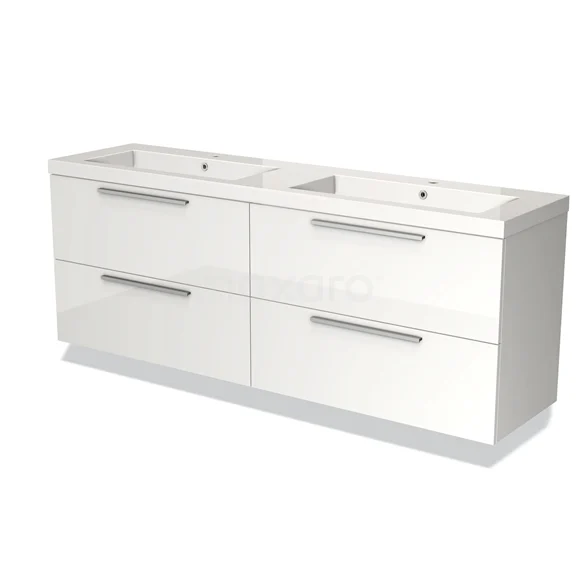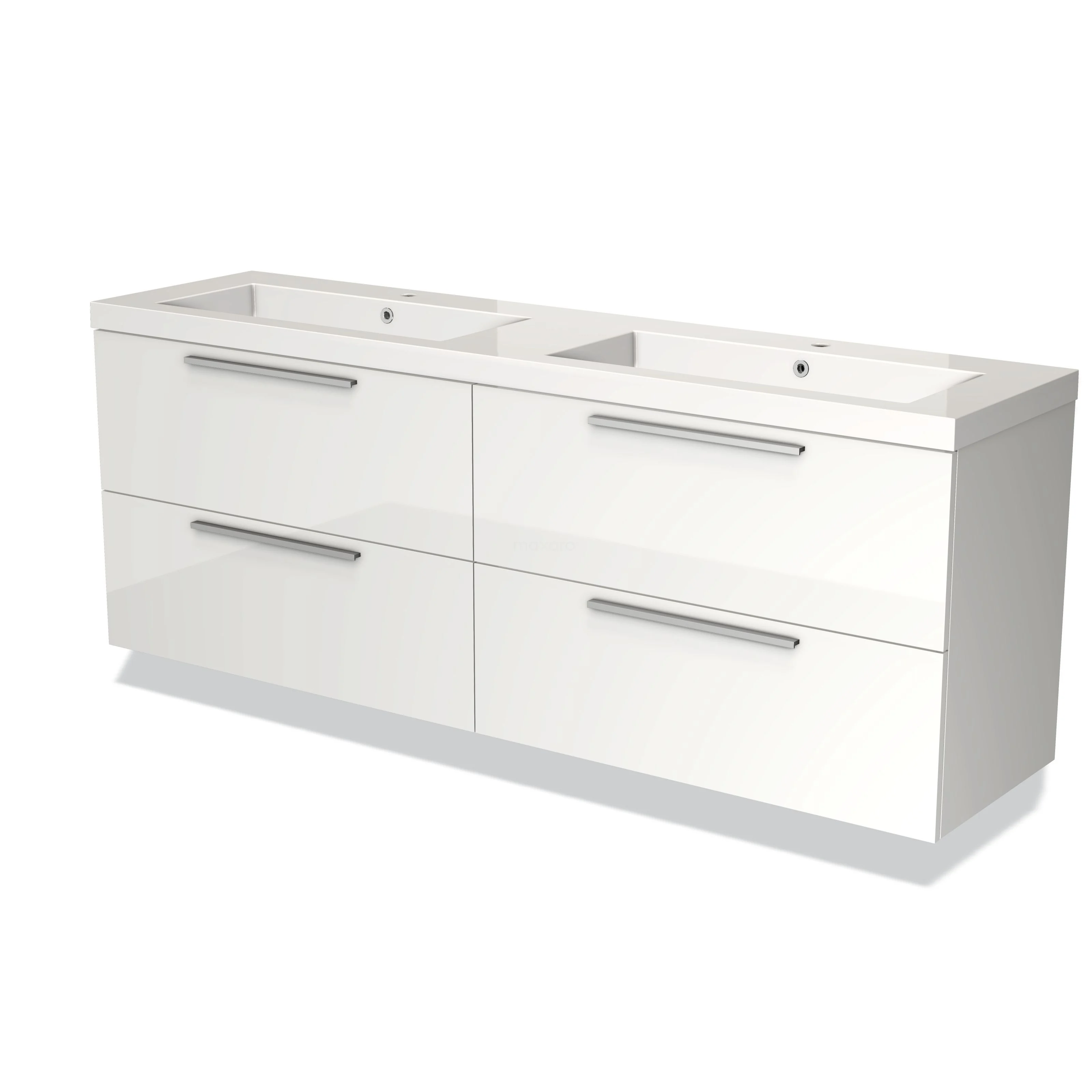 Modulo Vanity units with basin | 180 cm High-gloss white Flat front Mineral marble 4 drawers