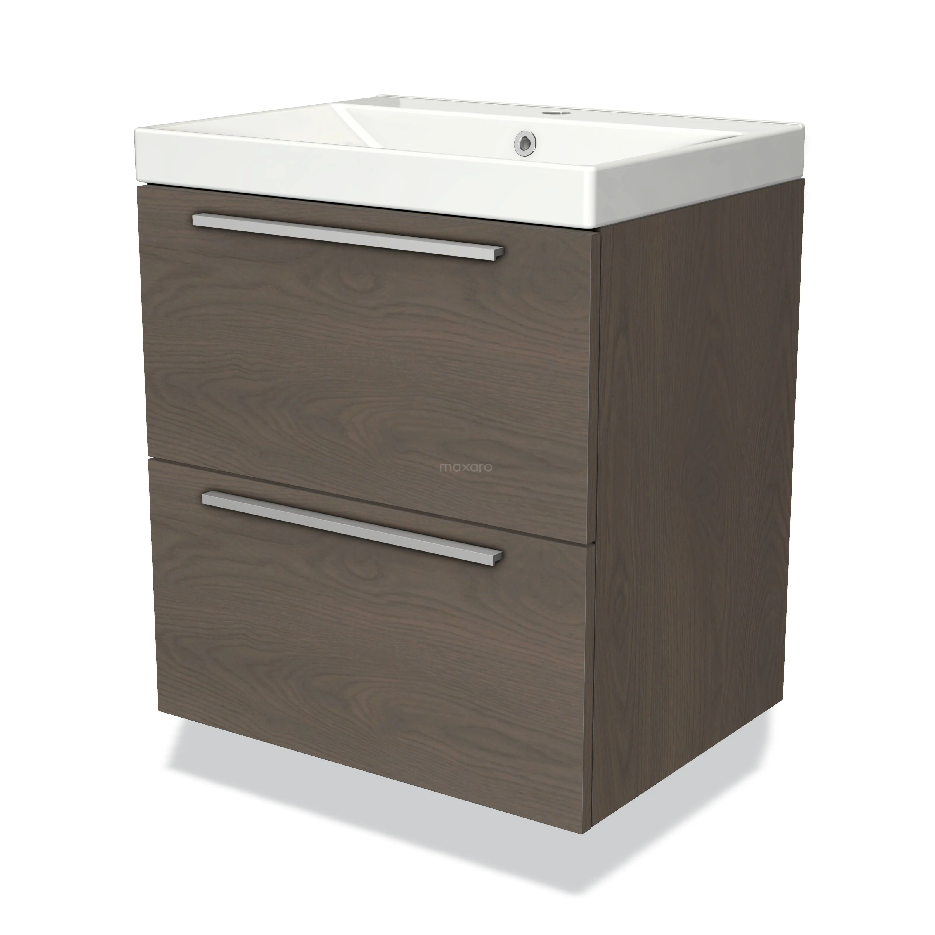 Modulo Vanity units with basin | 60 cm Dark brown oak Flat front Ceramic 2 Stacked drawers
