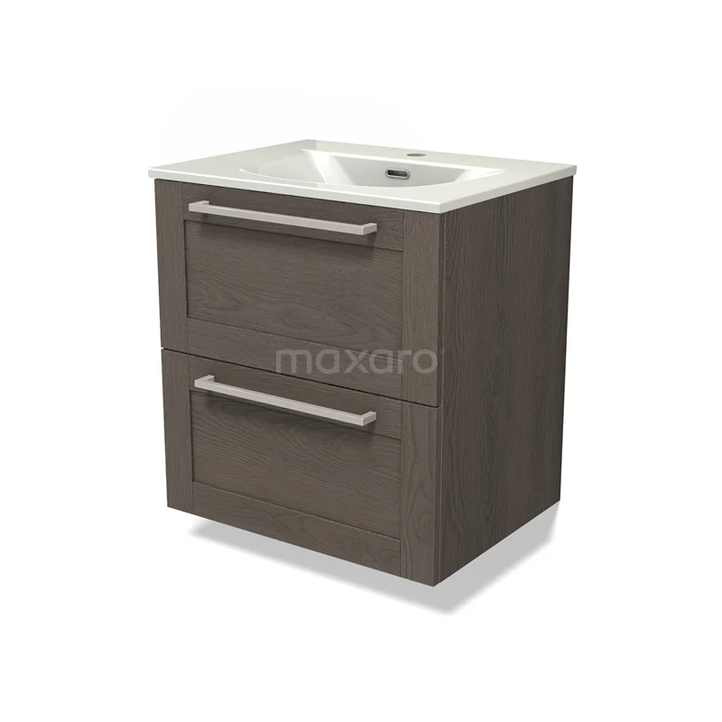 Modulo Vanity units with basin | 60 cm Dark brown oak Frame front Ceramic 2 Stacked drawers