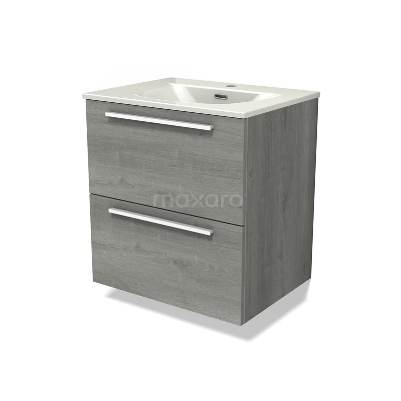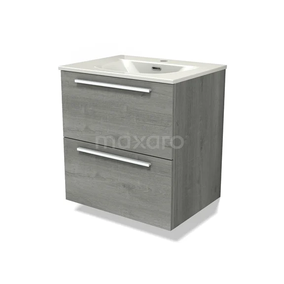 Modulo Vanity units with basin | 60 cm Grey oak Flat front Ceramic 2 Stacked drawers