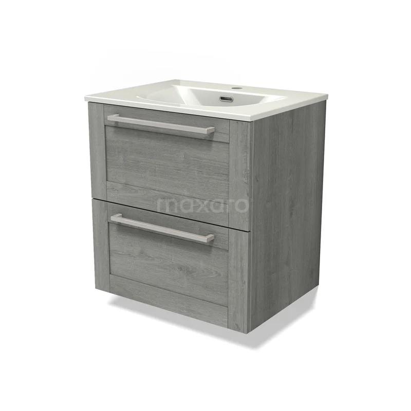 Modulo Vanity units with basin | 60 cm Grey oak Frame front Ceramic 2 Stacked drawers