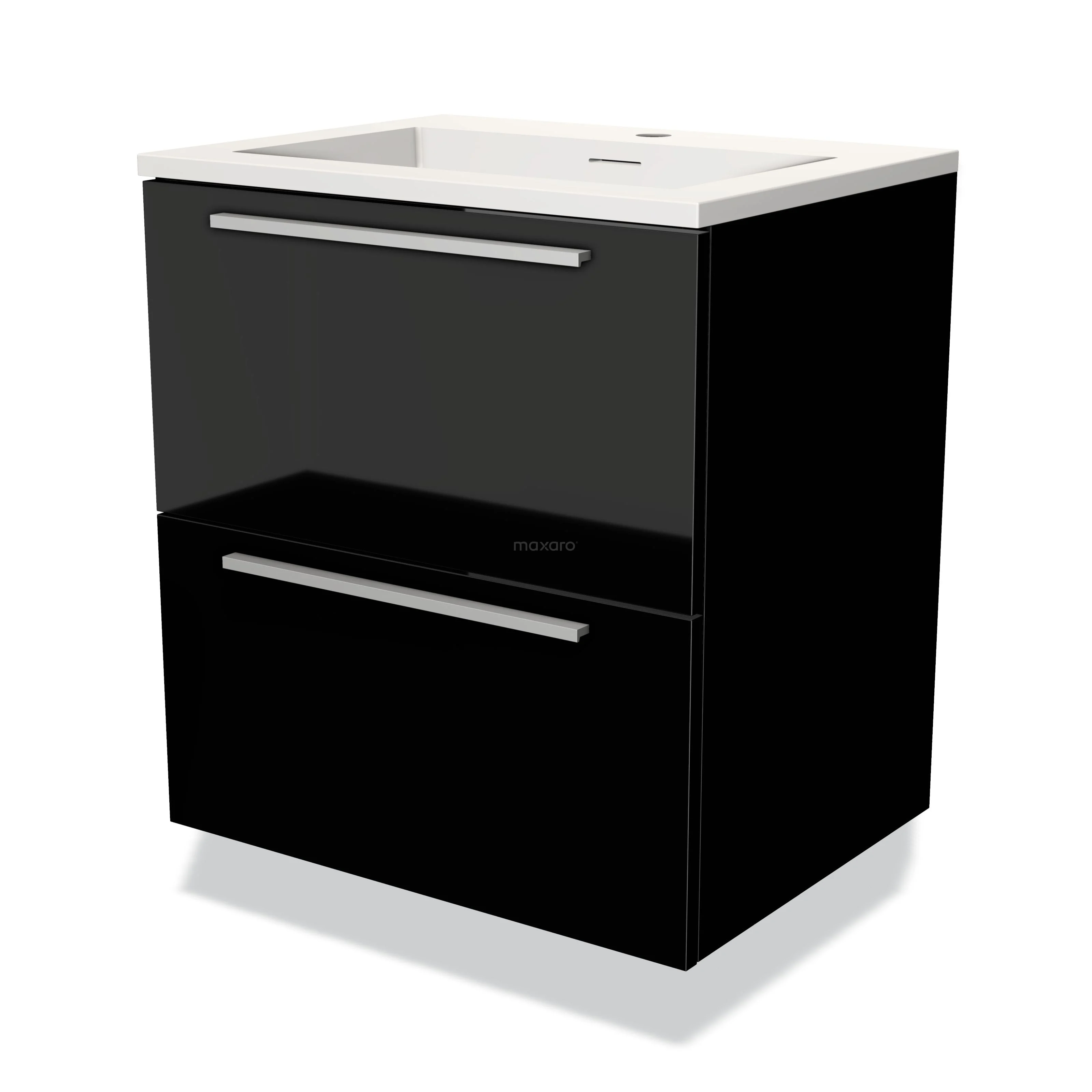 Modulo Vanity units with basin | 60 cm High-gloss black Flat front Solid surface 2 Stacked drawers