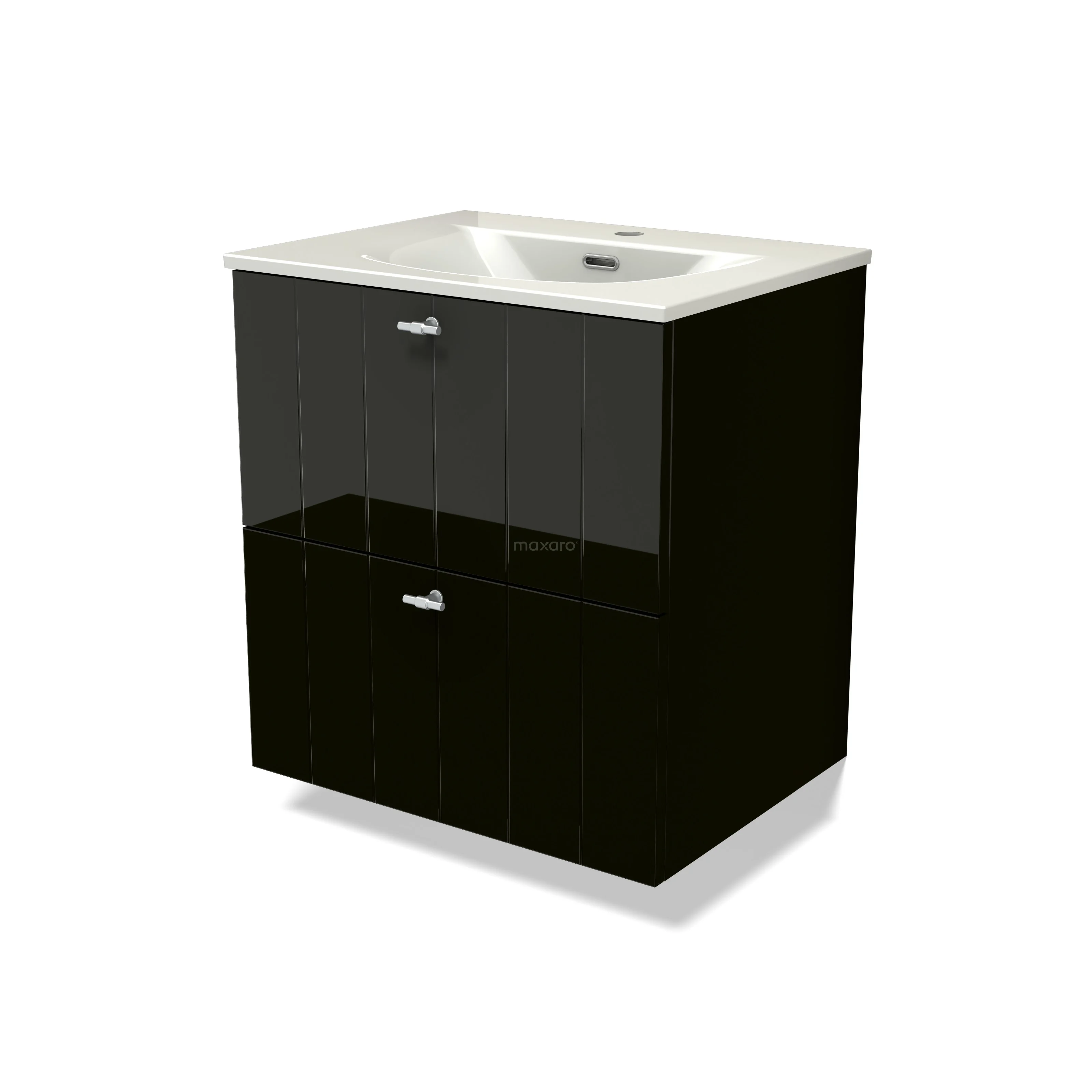 Modulo Vanity units with basin | 60 cm High-gloss black Slat front Ceramic 2 Stacked drawers