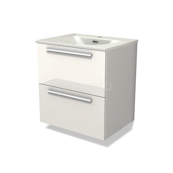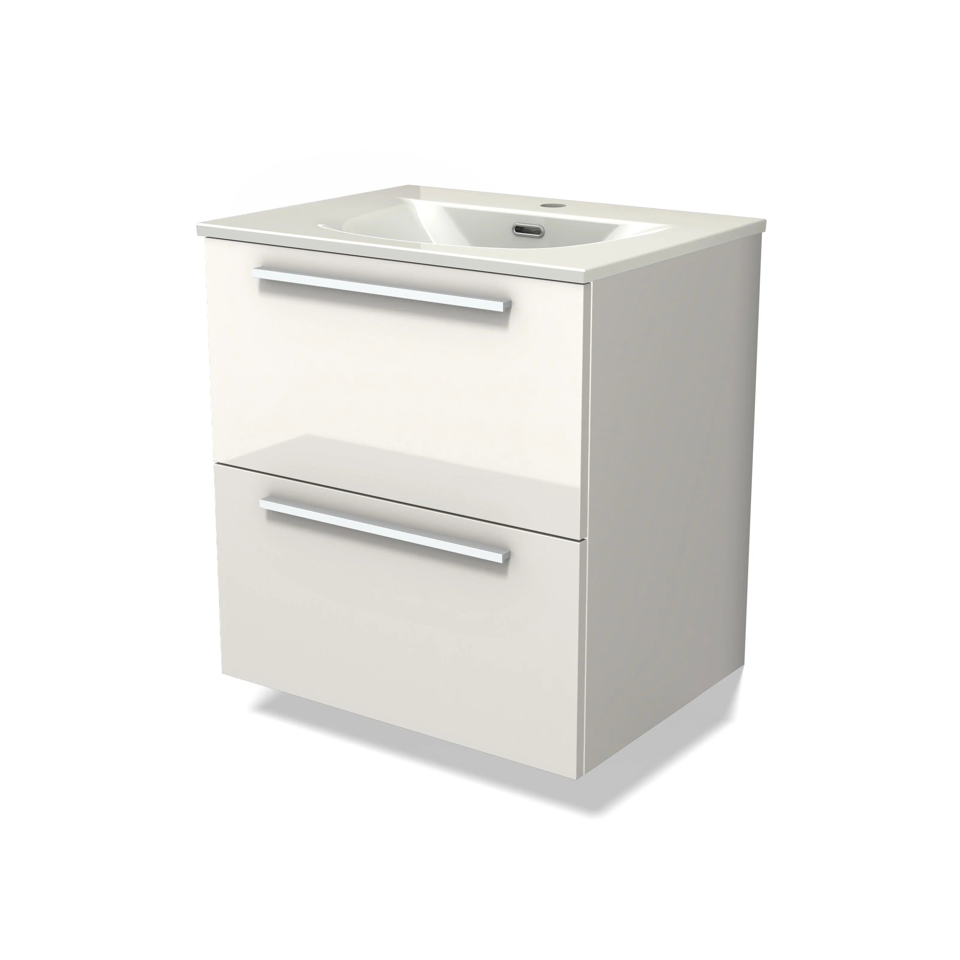 Modulo Vanity units with basin | 60 cm High-gloss white Flat front Ceramic 2 Stacked drawers