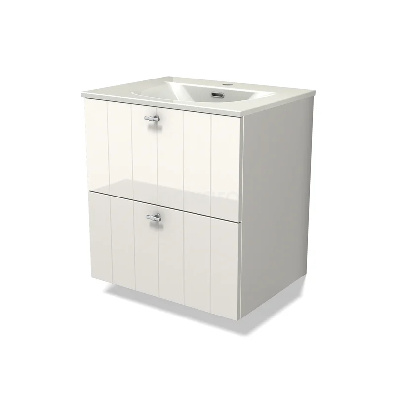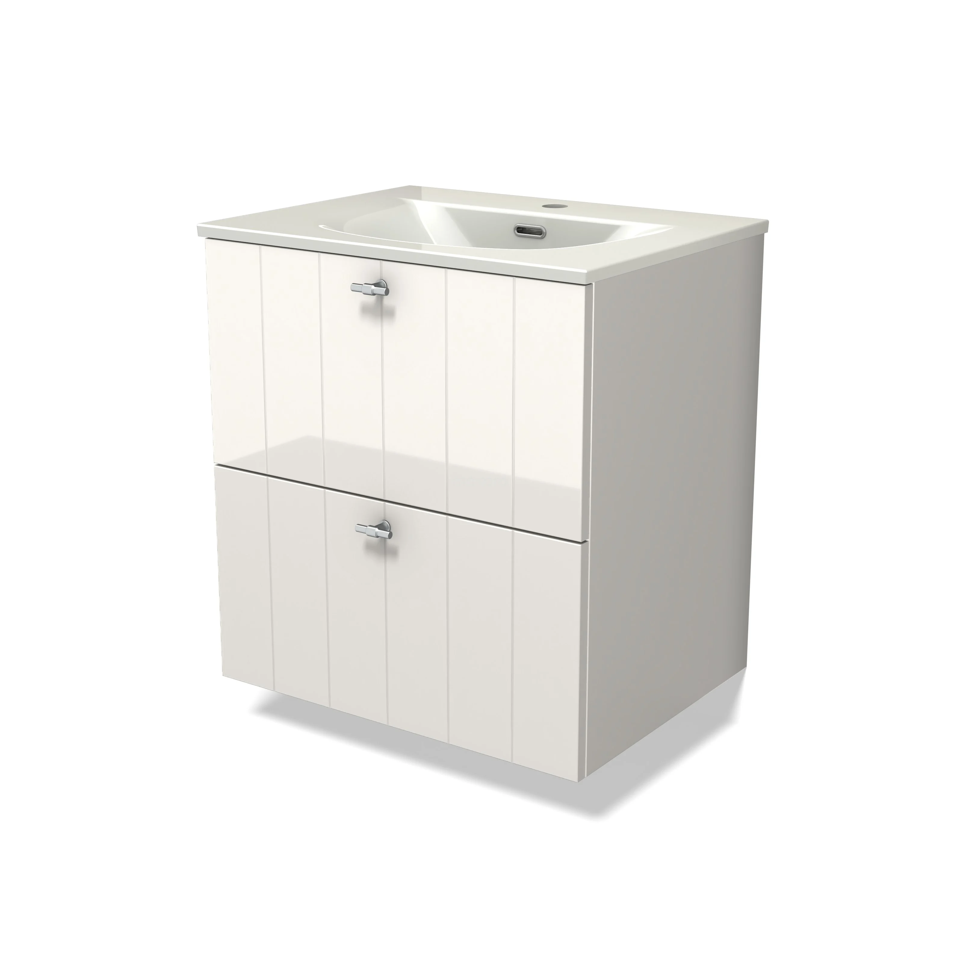 Modulo Vanity units with basin | 60 cm High-gloss white Slat front Ceramic 2 Stacked drawers