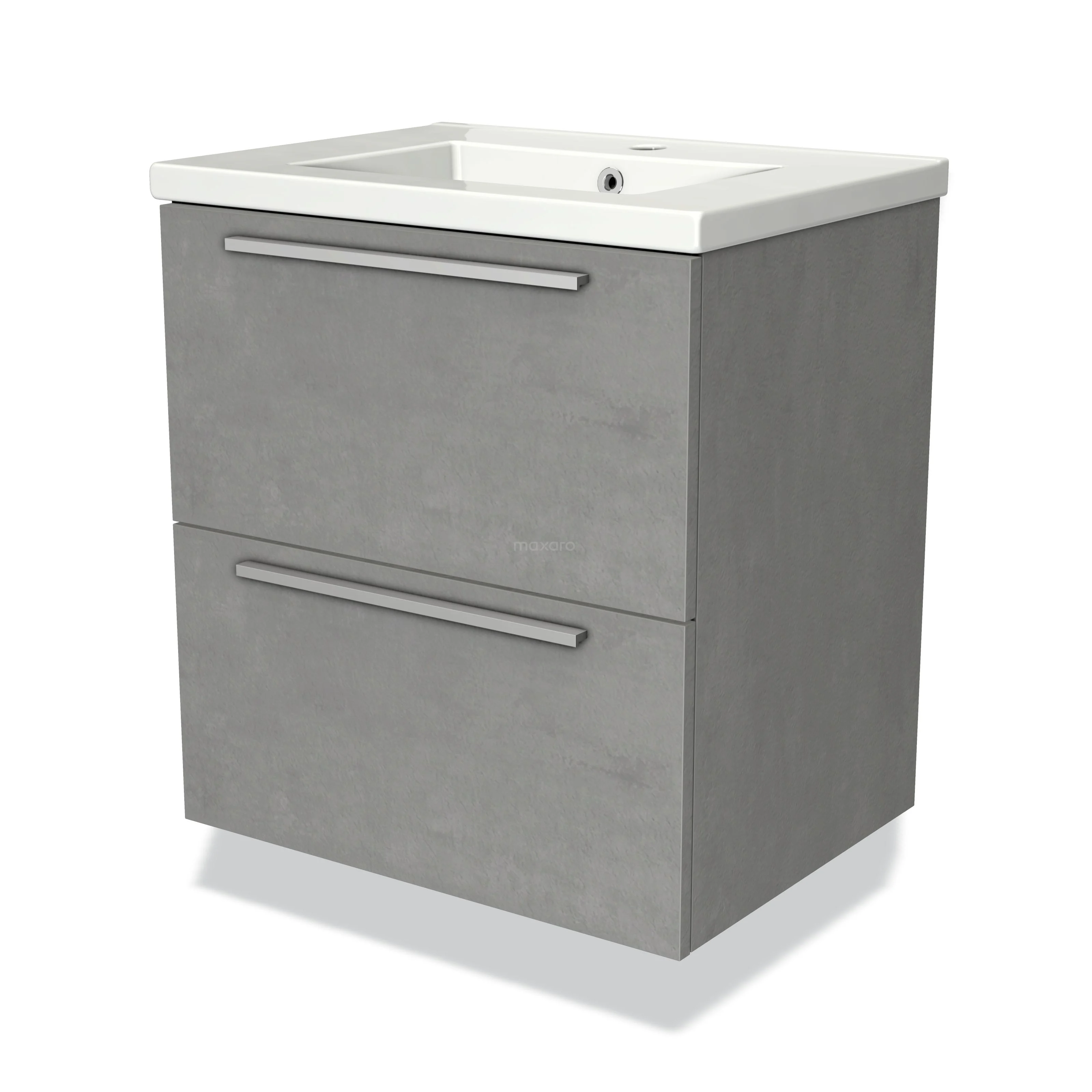 Modulo Vanity units with basin | 60 cm Light grey concrete Flat front Ceramic 2 Stacked drawers