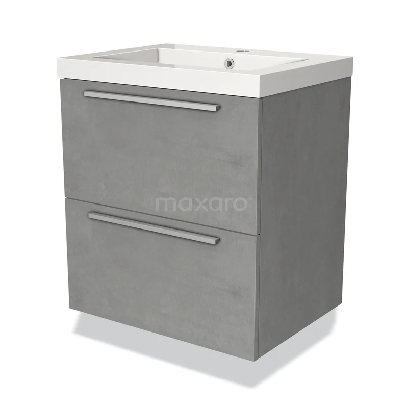 Modulo Vanity units with basin | 60 cm Light grey concrete Flat front Mineral marble 2 Stacked drawers
