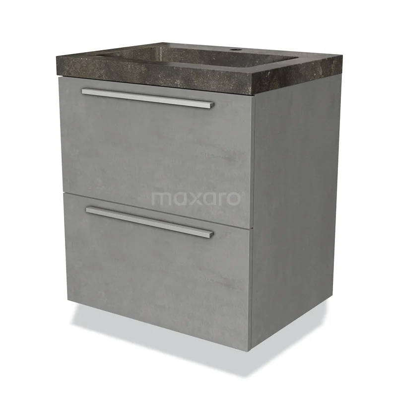 Modulo Vanity units with basin | 60 cm Light grey concrete Flat front Natural stone 2 Stacked drawers