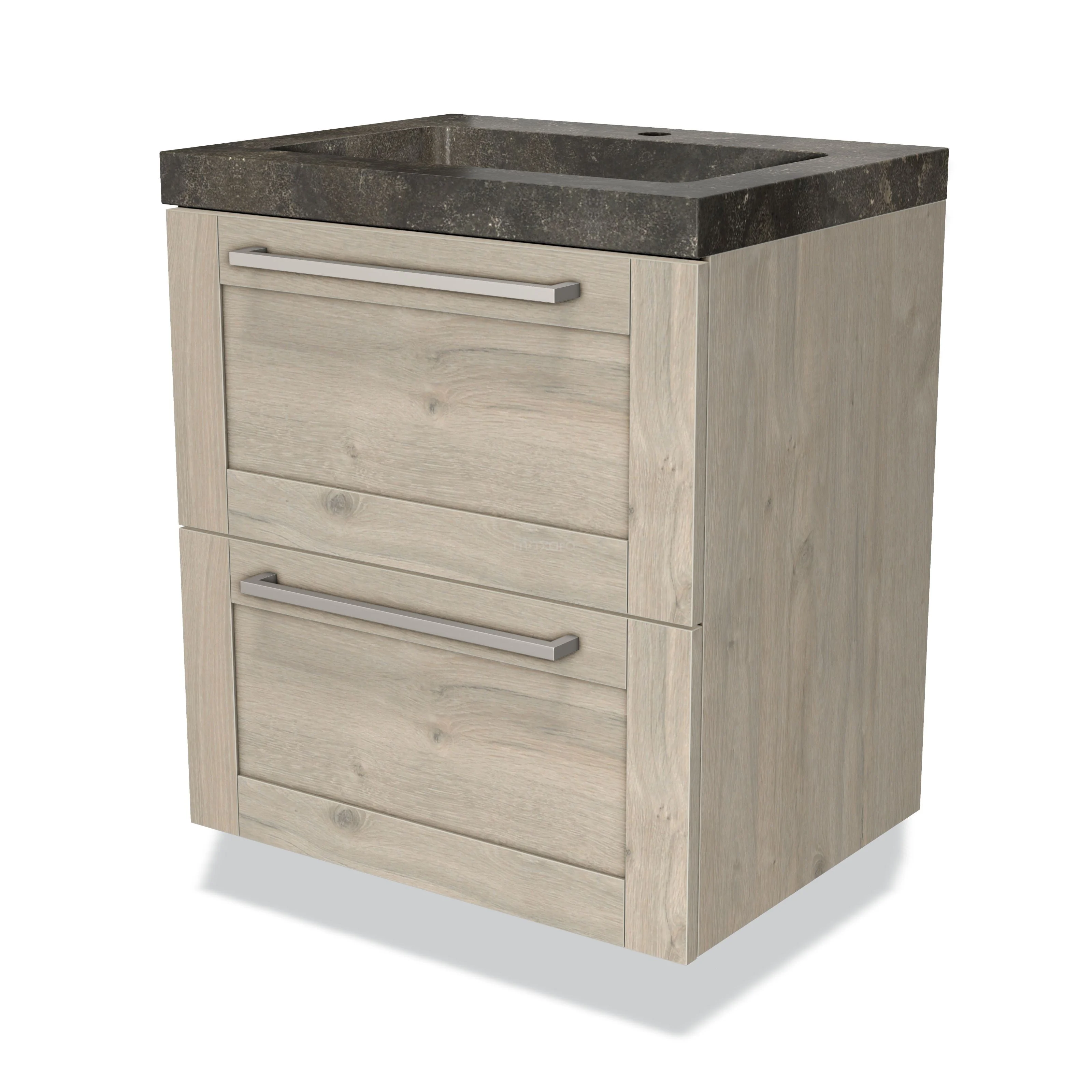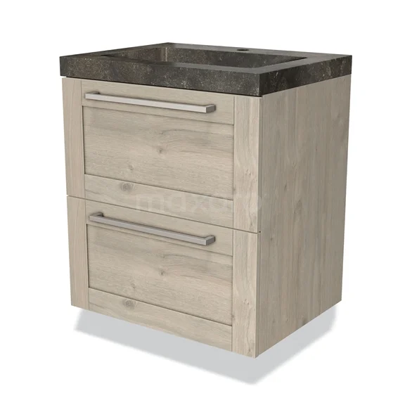 Modulo Vanity units with basin | 60 cm Light grey oak Frame front Natural stone 2 Stacked drawers