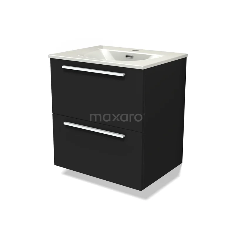 Modulo Vanity units with basin | 60 cm Matte black Flat front Ceramic 2 Stacked drawers