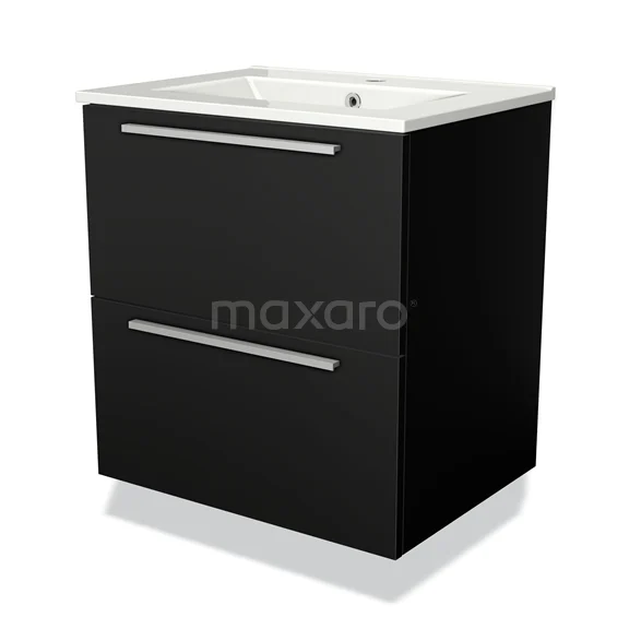 Modulo Vanity units with basin | 60 cm Matte black Flat front Ceramic 2 Stacked drawers