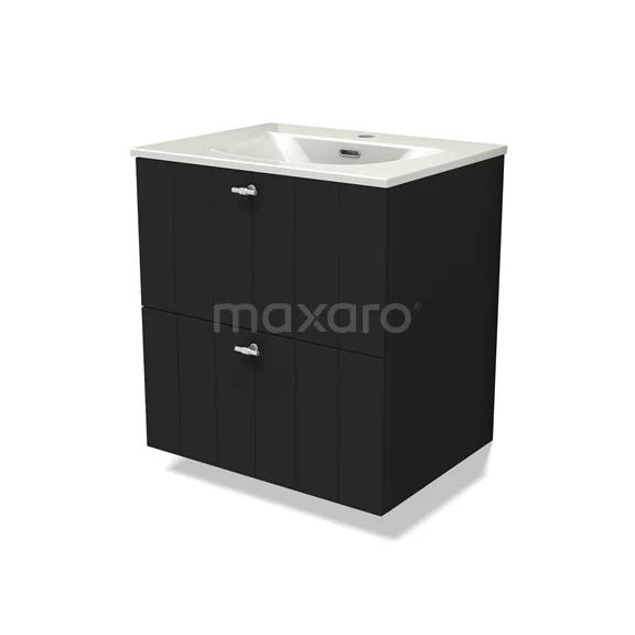 Modulo Vanity units with basin | 60 cm Matte black Slat front Ceramic 2 Stacked drawers