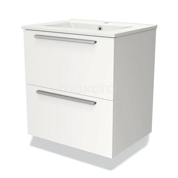 Modulo Vanity units with basin | 60 cm Matte white Flat front Ceramic 2 Stacked drawers