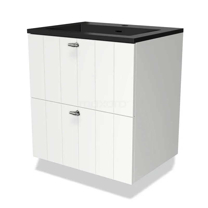 Modulo Vanity units with basin | 60 cm Matte white Slat front Quartz 2 Stacked drawers