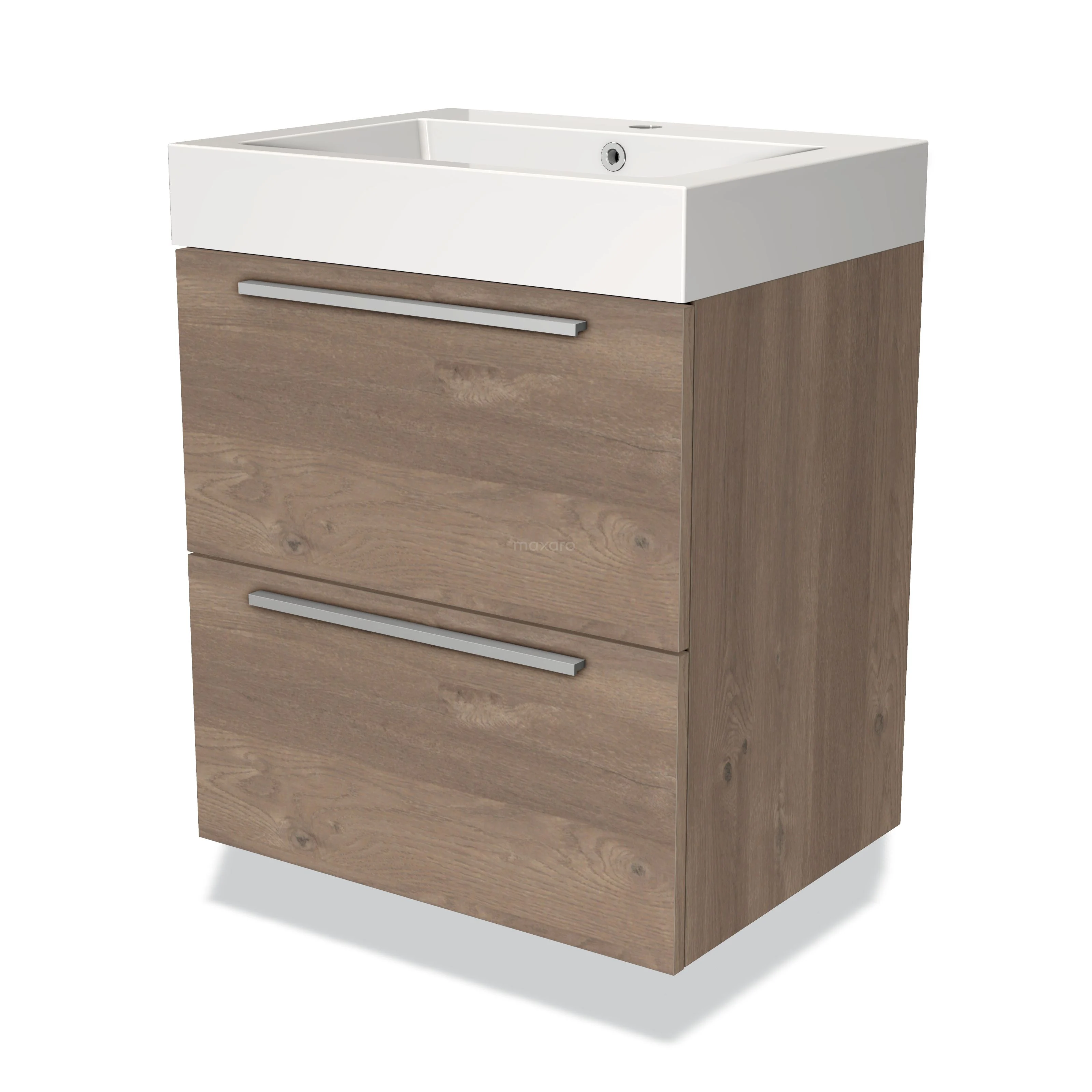 Modulo Vanity units with basin | 60 cm Mid brown oak Flat front Mineral marble 2 Stacked drawers