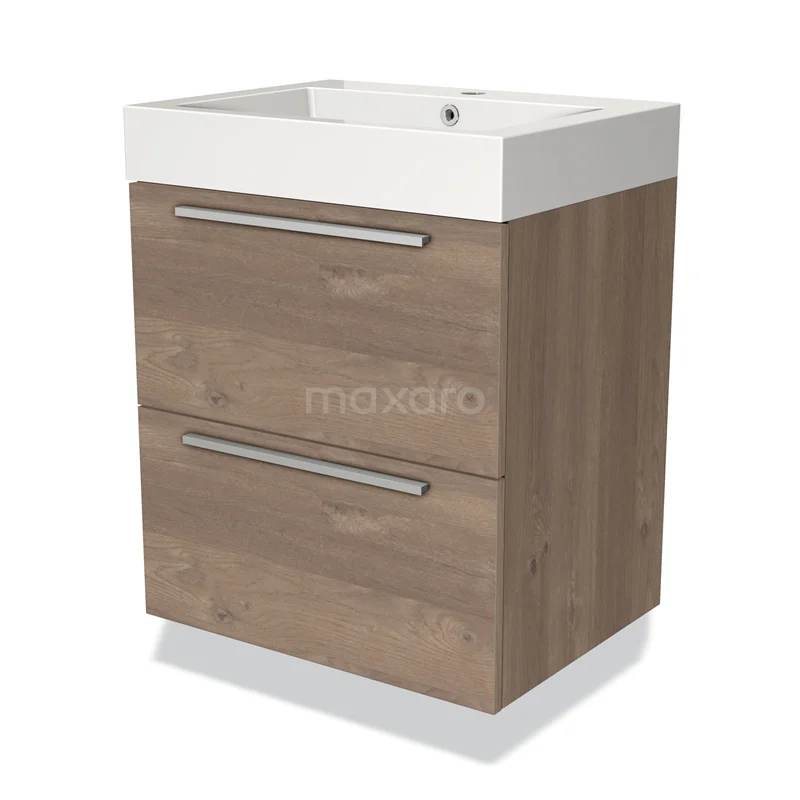 Stylish design The stylish design makes this bathroom unit the eye-catcher of your bathroom. The base cabinet features a flat front and has a mid brown oak finish. This beautiful oak look creates a warm atmosphere in your bathroom interior. In addition, the flat front provides a timeless touch. You will need to joint the handles yourself. These are available in different colours and shapes.