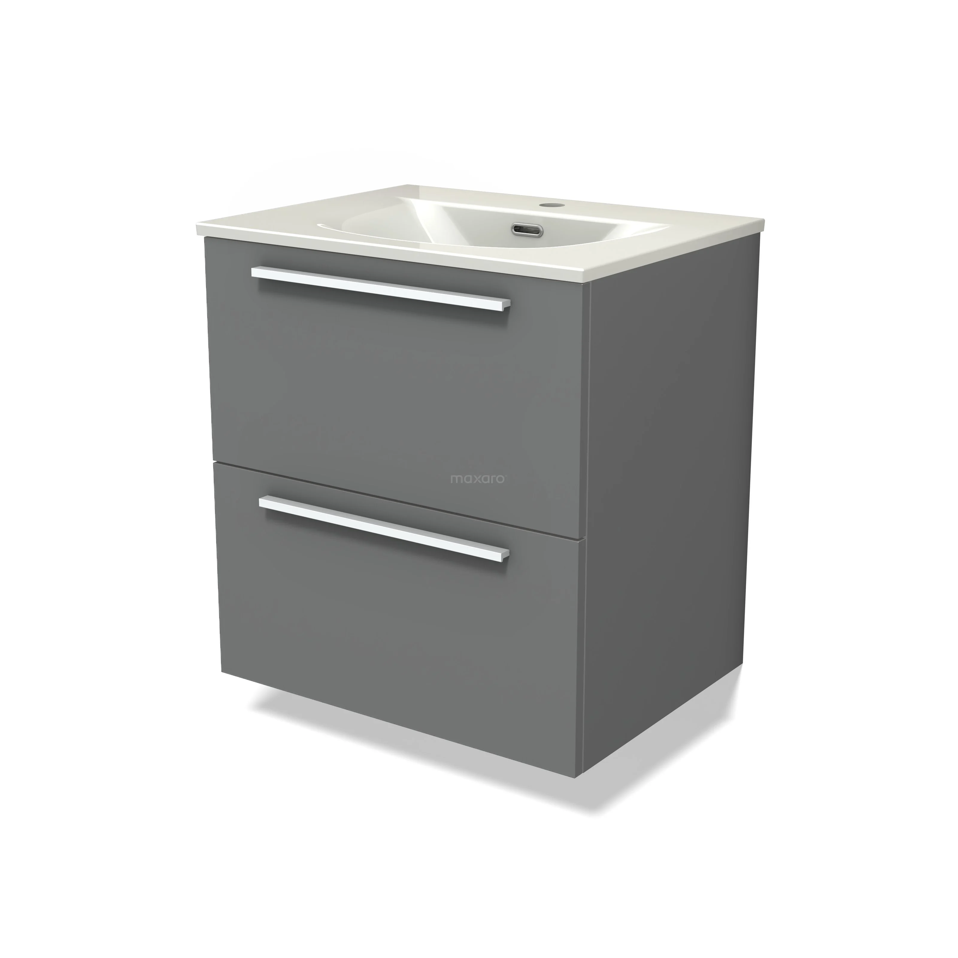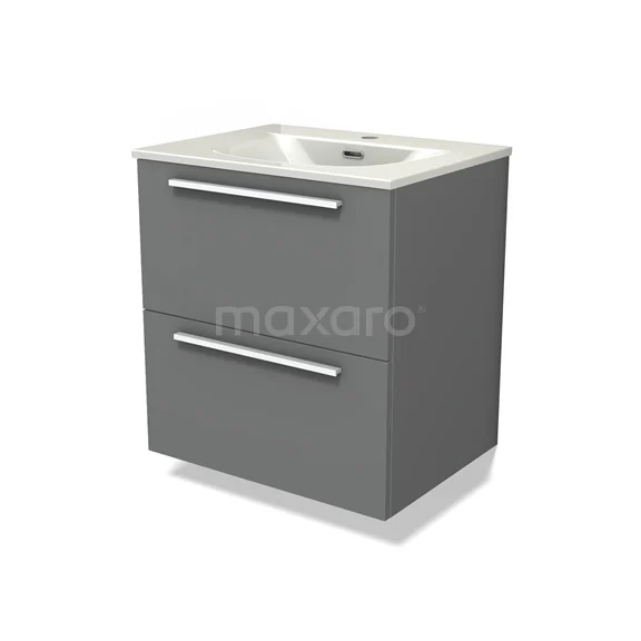 Modulo Vanity units with basin | 60 cm Mid grey Flat front Ceramic 2 Stacked drawers