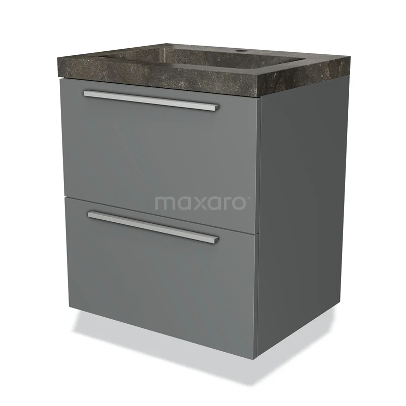 Modulo Vanity units with basin | 60 cm Mid grey Flat front Natural stone 2 Stacked drawers