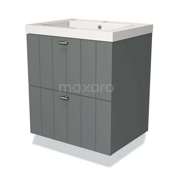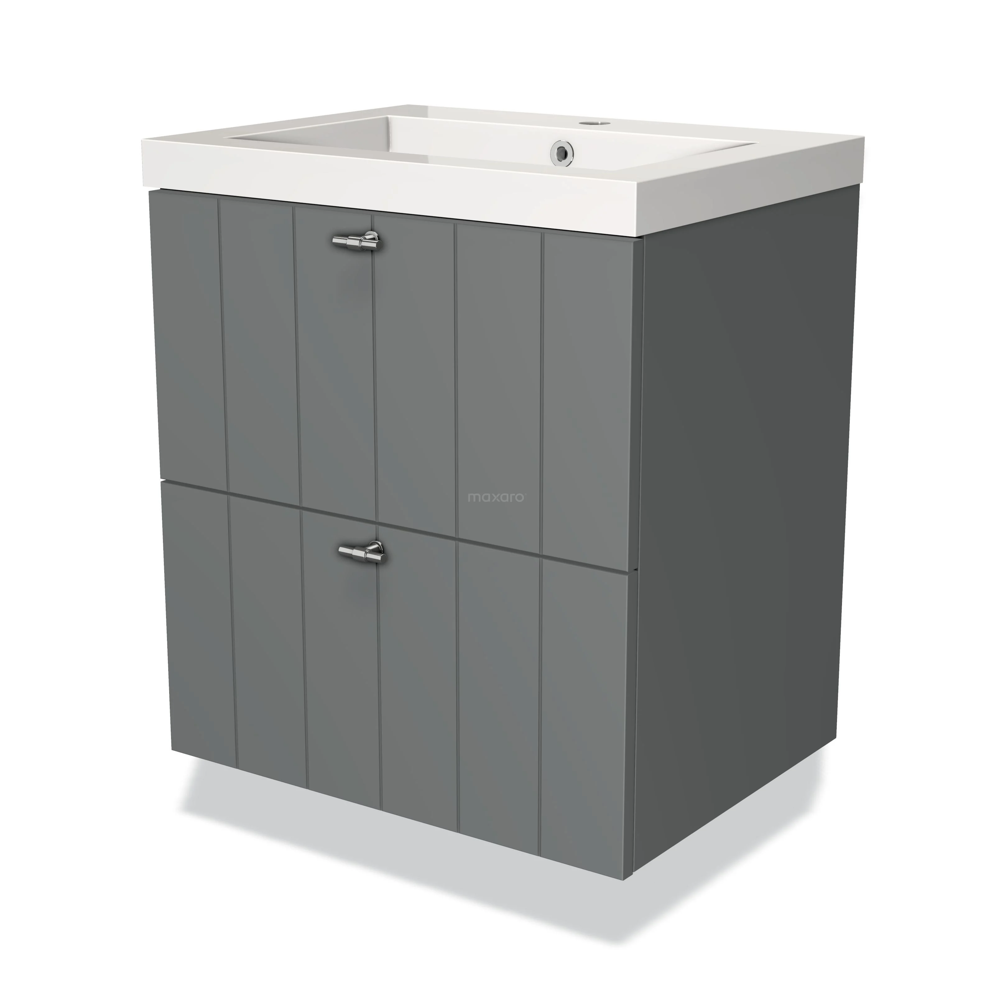 Modulo Vanity units with basin | 60 cm Mid grey Slat front Mineral marble 2 Stacked drawers