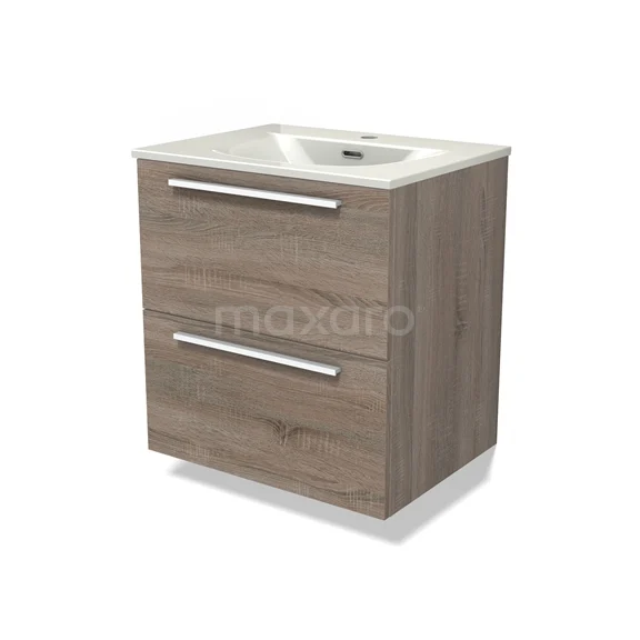 Modulo Vanity units with basin | 60 cm Oak Flat front Ceramic 2 Stacked drawers