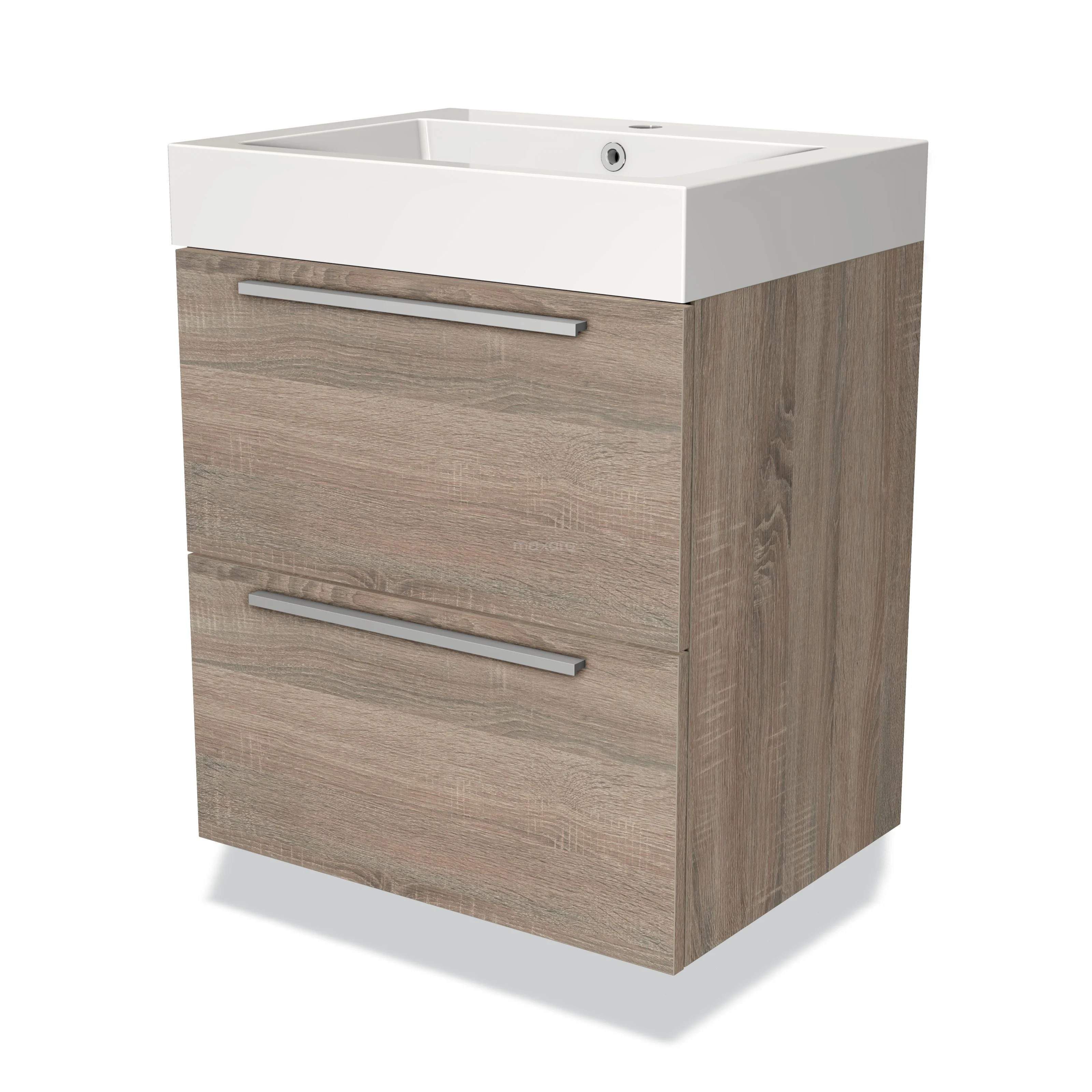 Stylish design The stylish design makes this bathroom unit the eye-catcher of your bathroom. The base cabinet features a flat front and has an oak finish. This beautiful oak look creates a warm atmosphere in your bathroom interior. In addition, the flat front provides a timeless touch. You need to joint the handles yourself. These are available in different colours and shapes.