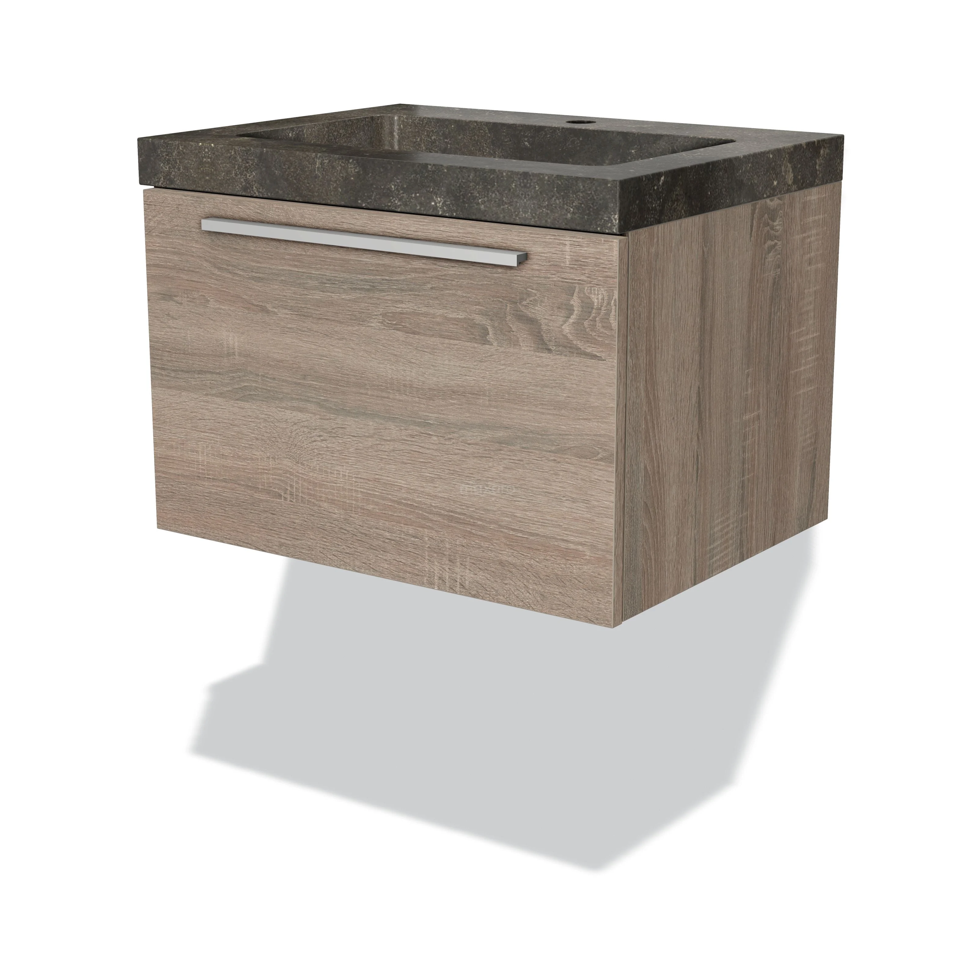 Modulo Vanity units with basin | 60 cm Oak Flat front Natural stone 1 drawer