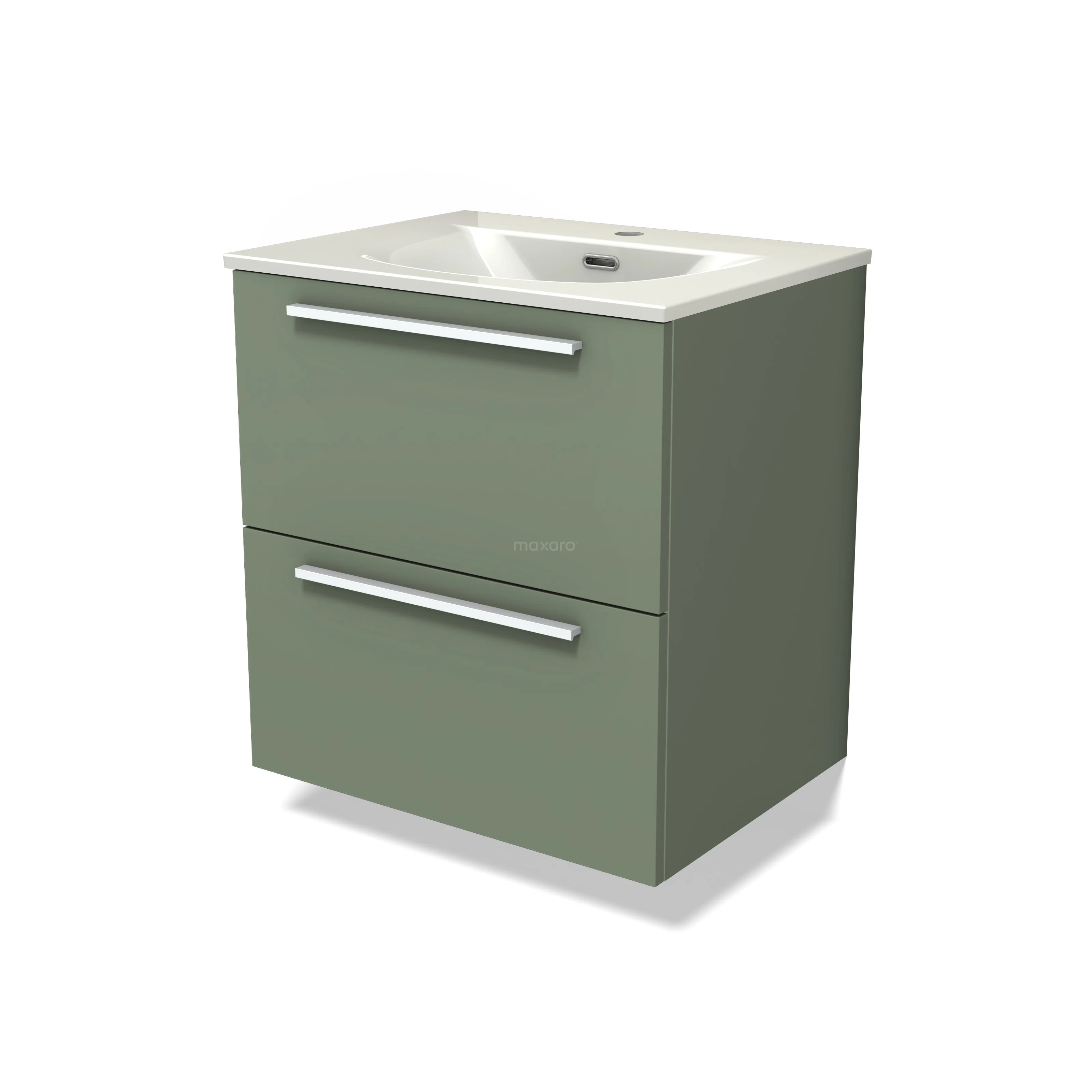 Modulo Vanity units with basin | 60 cm Sage green Flat front Ceramic 2 Stacked drawers