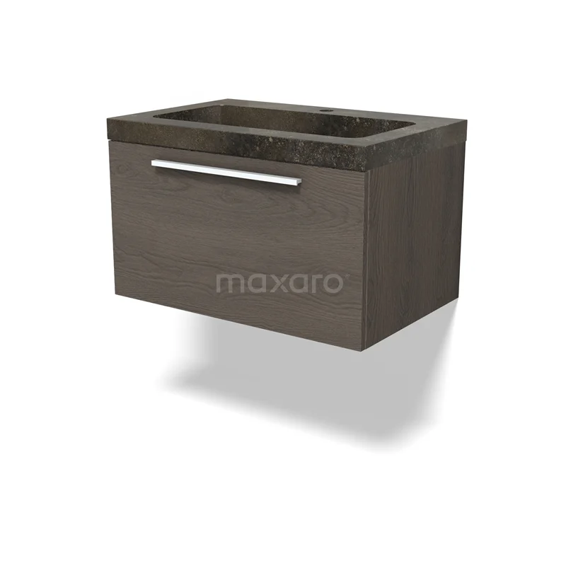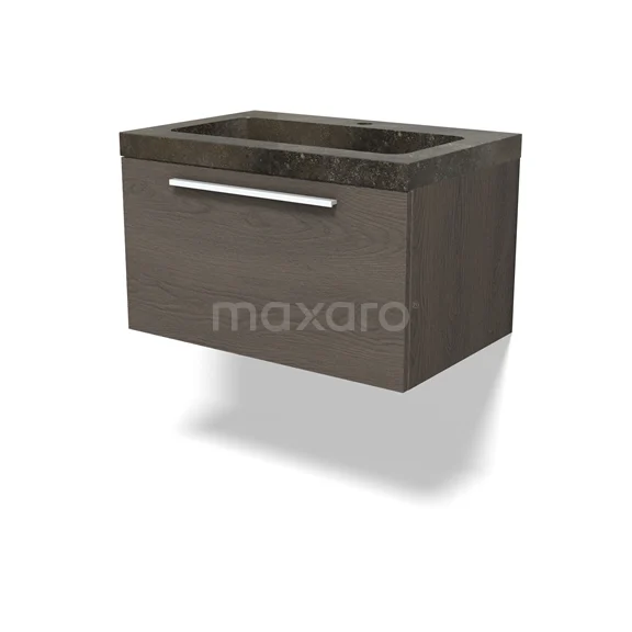 Modulo Vanity units with basin | 70 cm Dark brown oak Flat front Natural stone 1 drawer