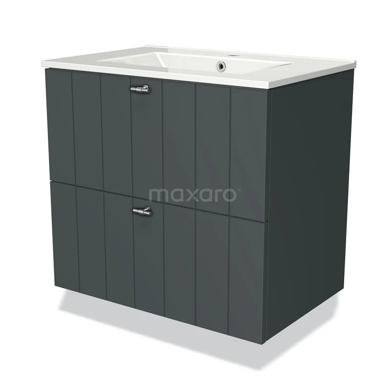 Modulo Vanity units with basin | 70 cm Dark grey Slat front Ceramic 2 Stacked drawers