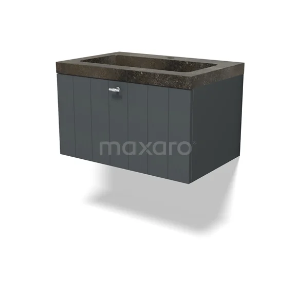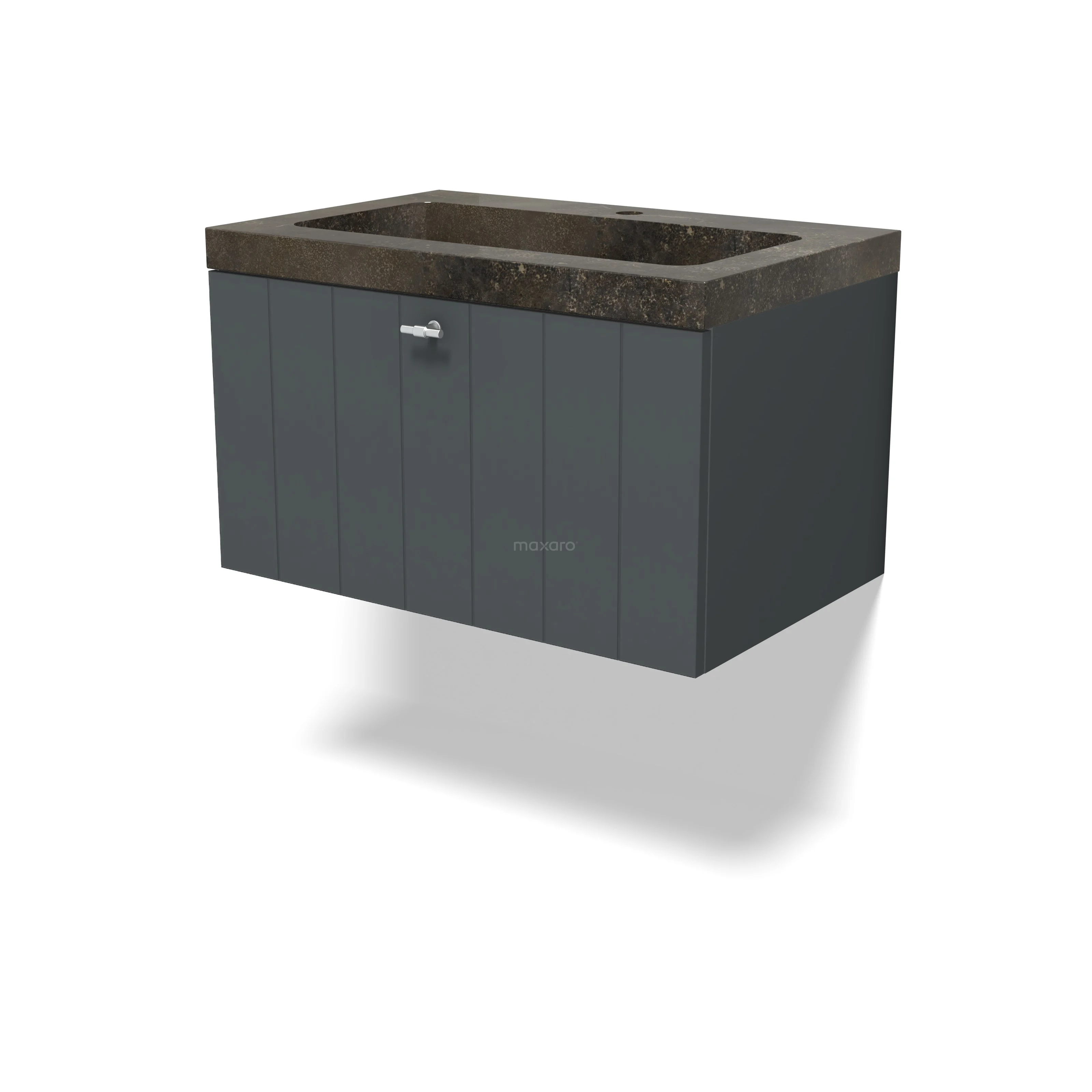 Modulo Vanity units with basin | 70 cm Dark grey Slat front Natural stone 1 drawer