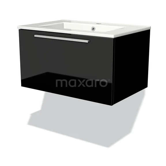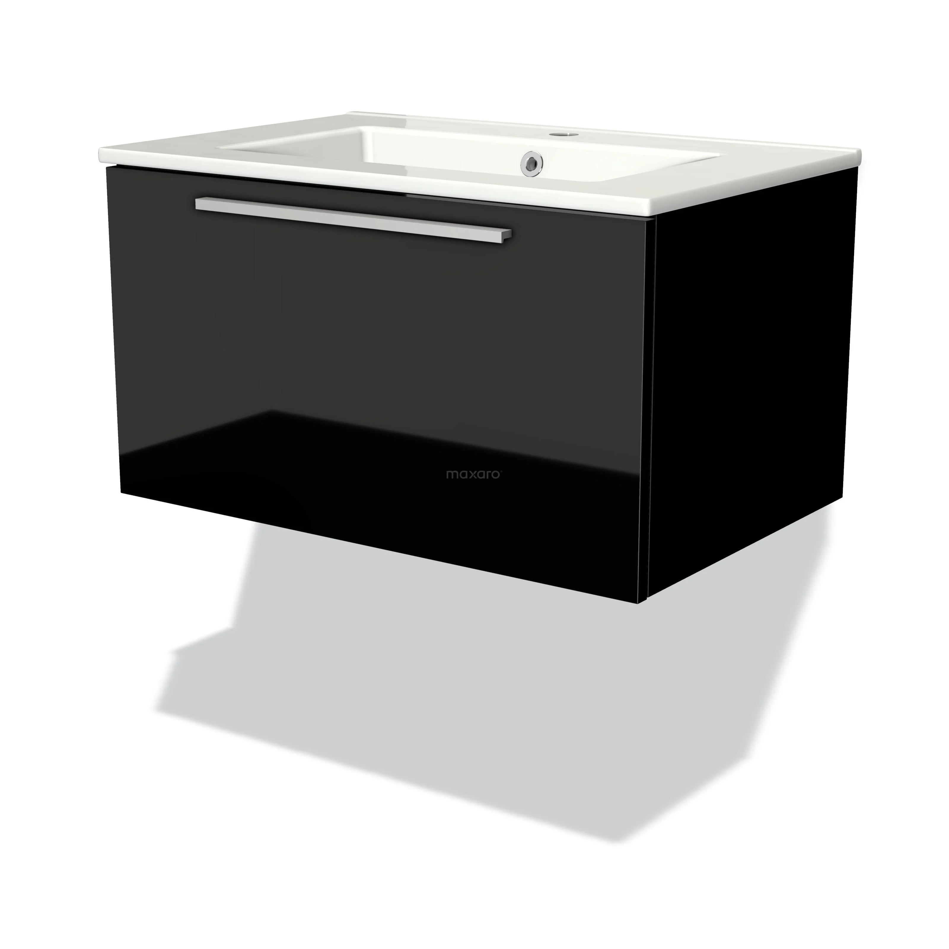 Modulo Vanity units with basin | 70 cm High-gloss black Flat front Ceramic 1 drawer
