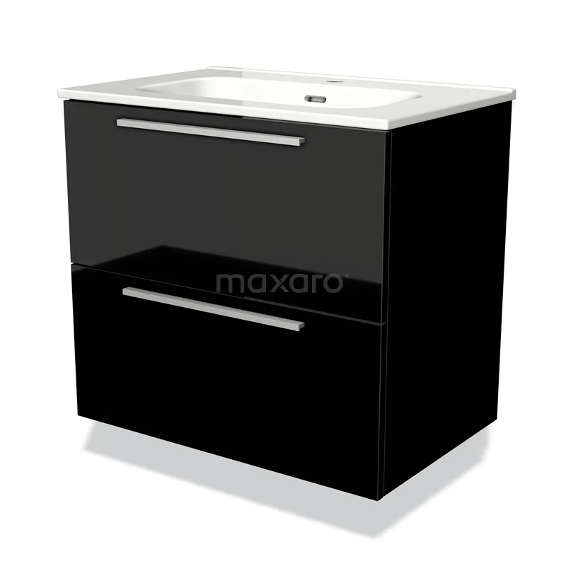 Modulo Vanity units with basin | 70 cm High-gloss black Flat front Ceramic 2 Stacked drawers